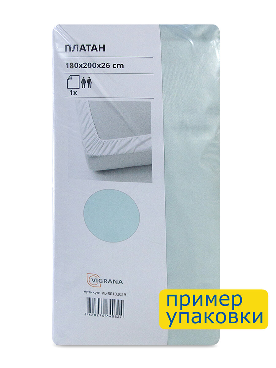 Простыня на резинке 180х200 см, белая, сатин, 100% лиоцелл, VIGRANA ПЛАТАН