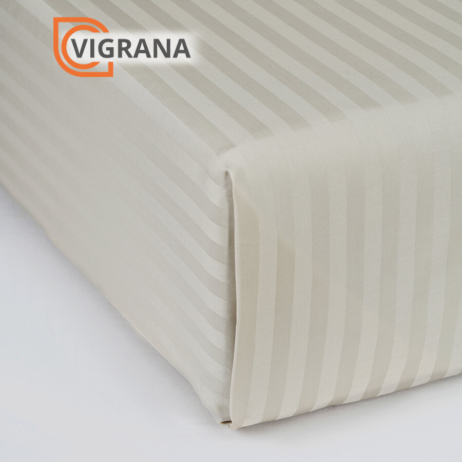 Простыня на резинке VIGRANA натесмио 140х200 белого цвета страйп, сатин, лиоцелл