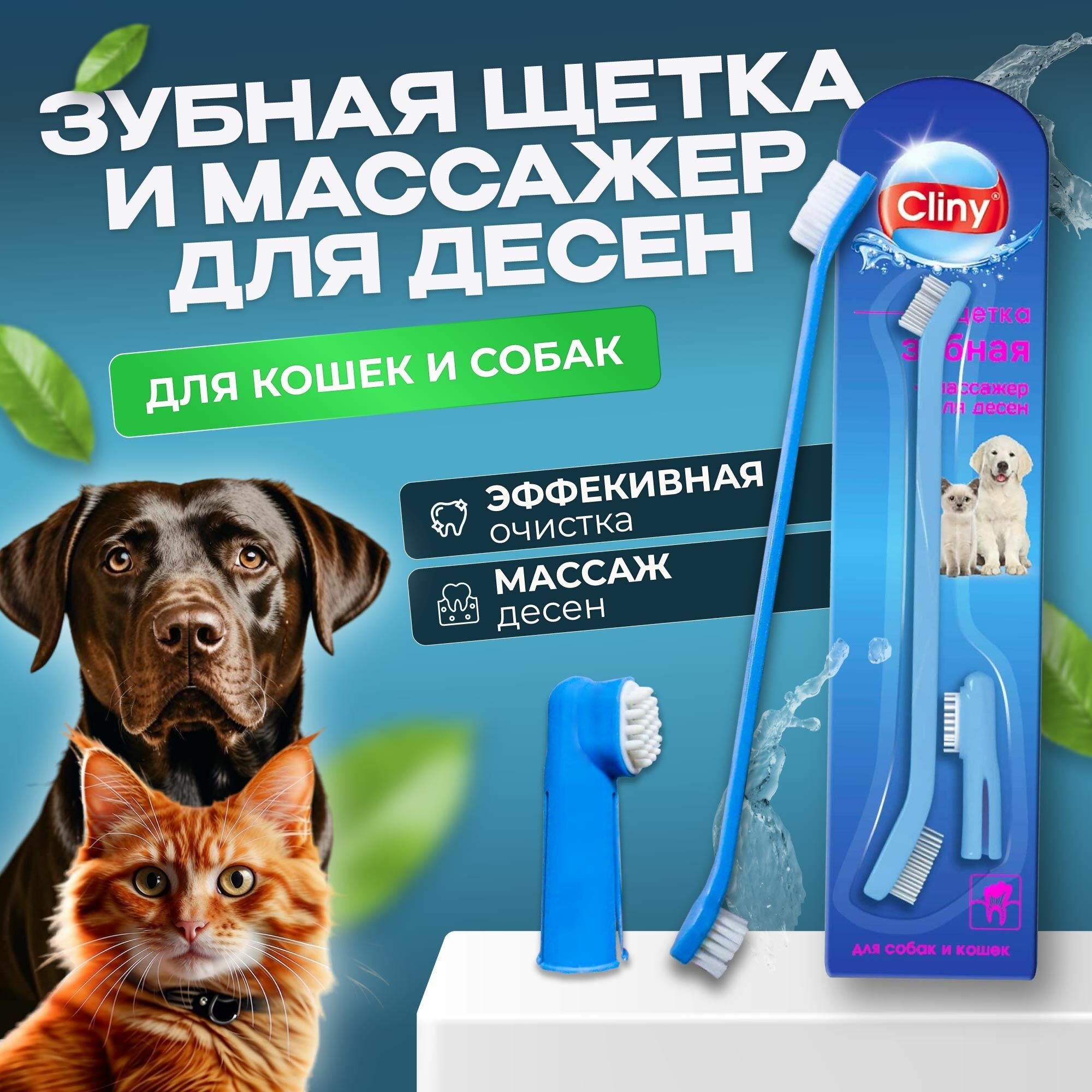Зубная щетка Cliny, для кошек и собак, двусторонняя, с массажером интересное: