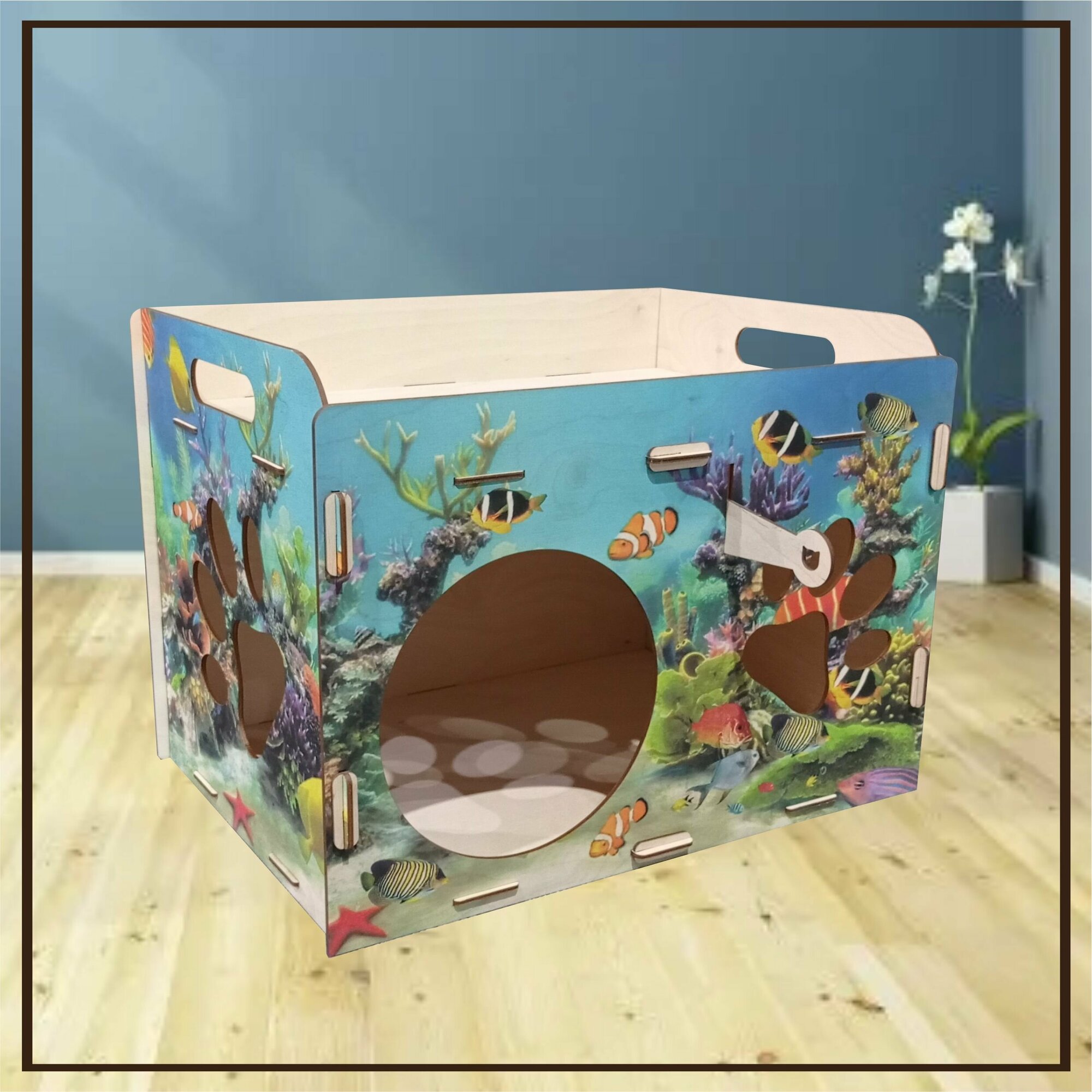 Деревянный домик для кота / Лежак для кошек / Лежанка для кошки из фанеры / Домик для животных из дерева