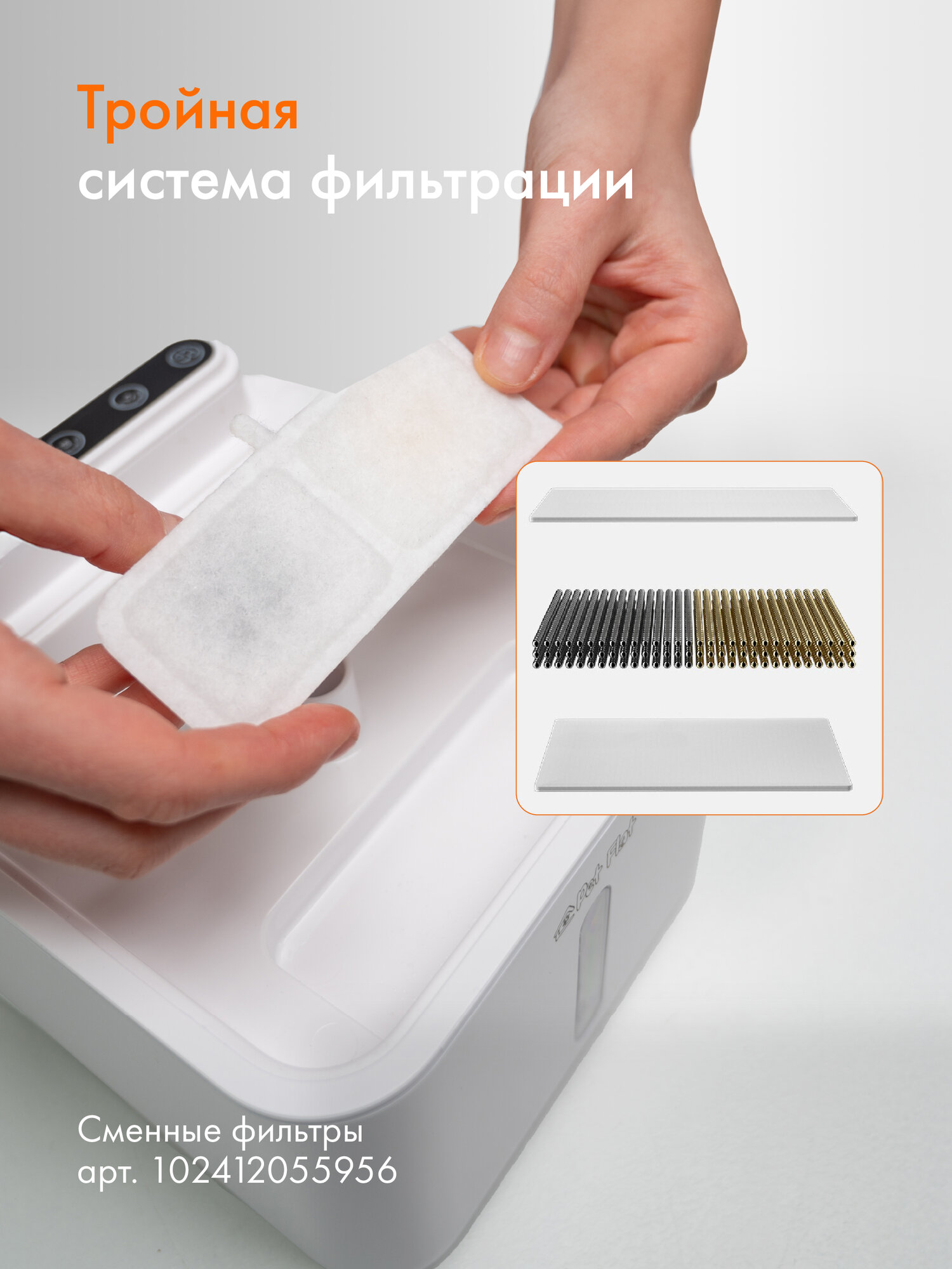 | Подробная комплектация | Миска; фильтр; адаптер и кабель; щипцы; фонтан; резервуар; щётка; руководство пользователя |