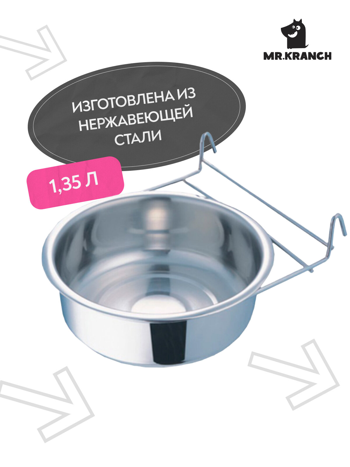 Купить Миска Mr.Kranch из нержавеющей стали с креплением для клеток и вольеров 1,35 л