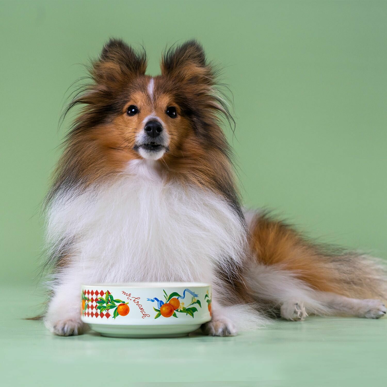 Mr.Kranch Миска фарфоровая "Апельсины" белая для собак и кошек 350мл