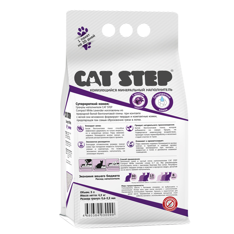 Купить Cat Step Compact White Lavеnder наполнитель для кошачьих туалетов минеральный комкующийся, 5 л
