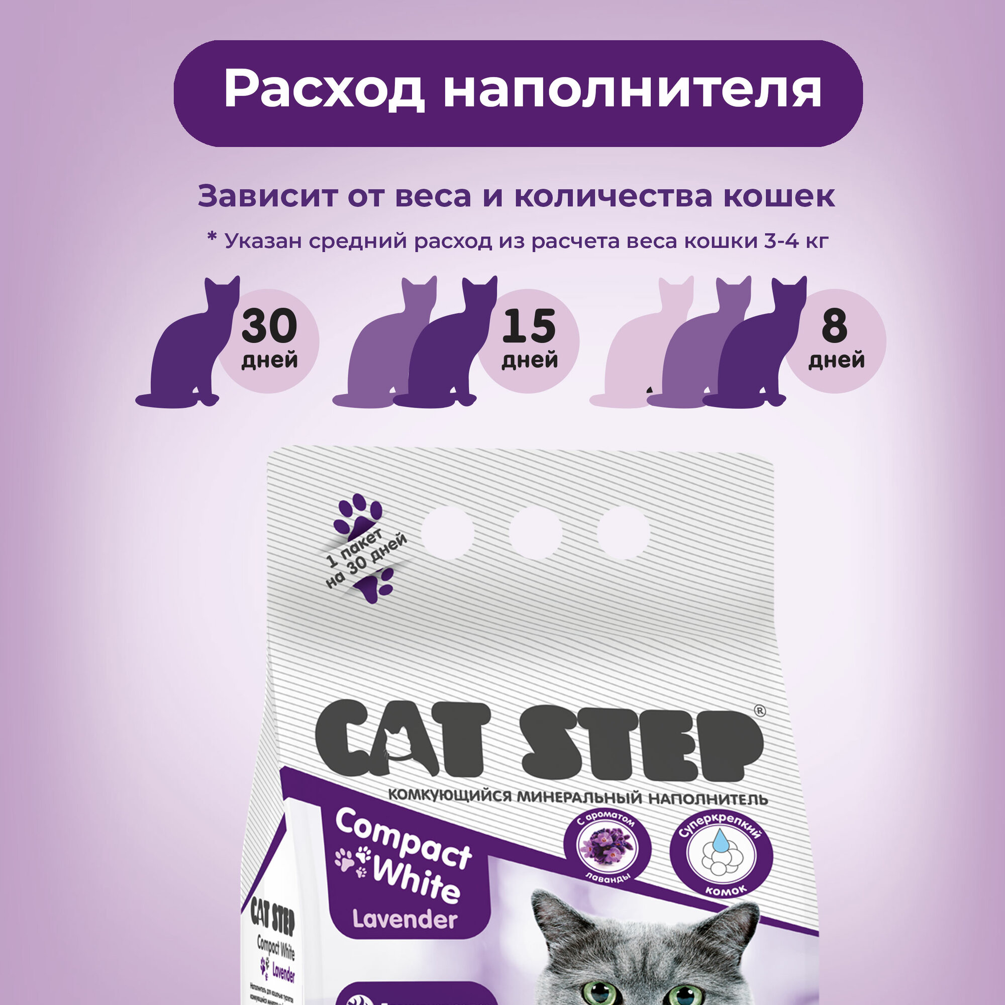 СохранитьНаполнитель для кошачьего туалета комкующийся минеральный CAT STEP Compact White Lavеnder, 5 л интересное: