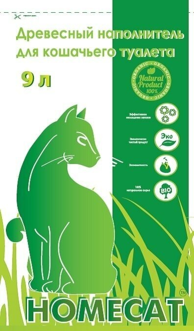 HOMECAT лесная свежесть наполнитель древесный для туалета кошек (9 л)