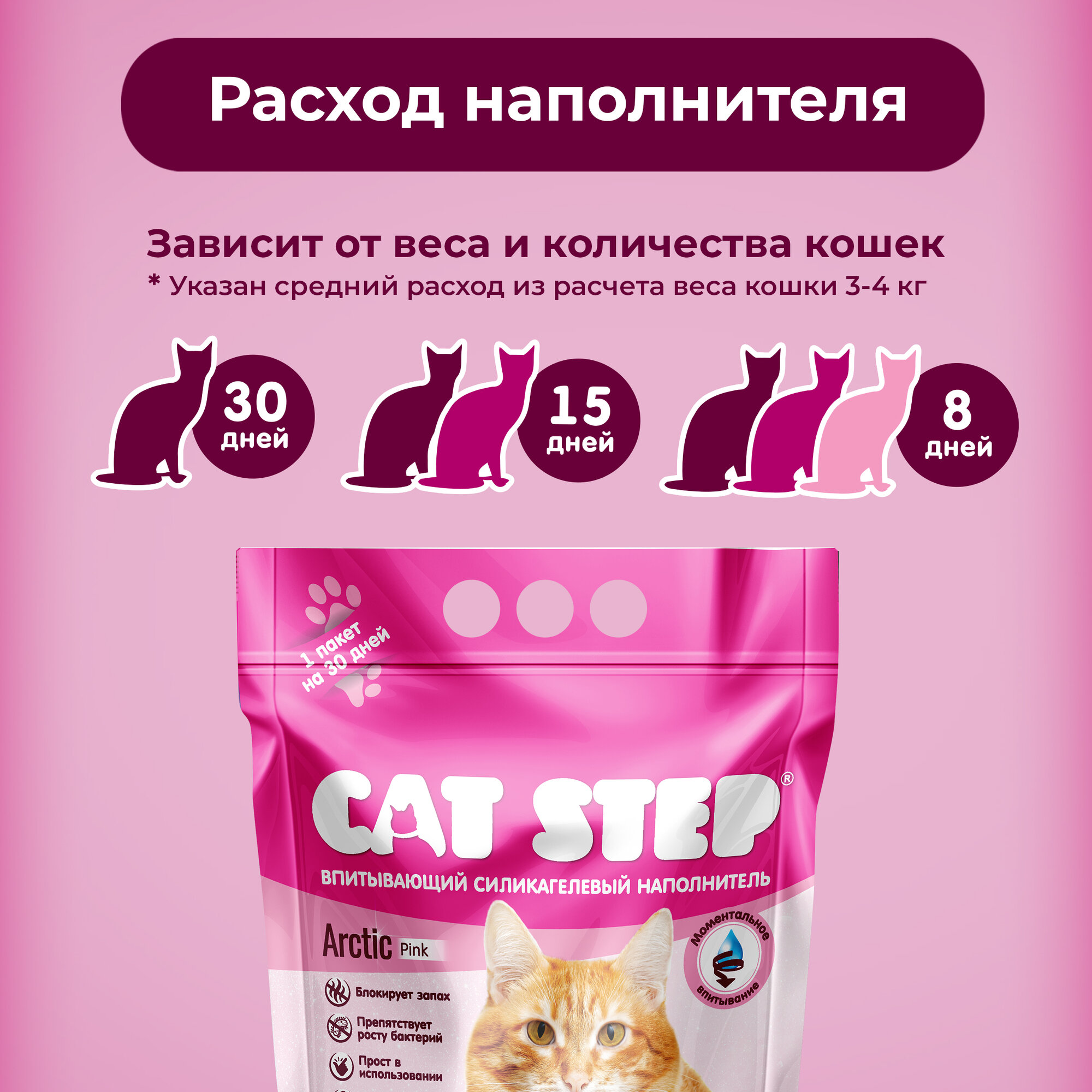 Наполнитель для кошачьего туалета впитывающий силикагелевый CAT STEP Arctic Pink, 3.8 л интересное: