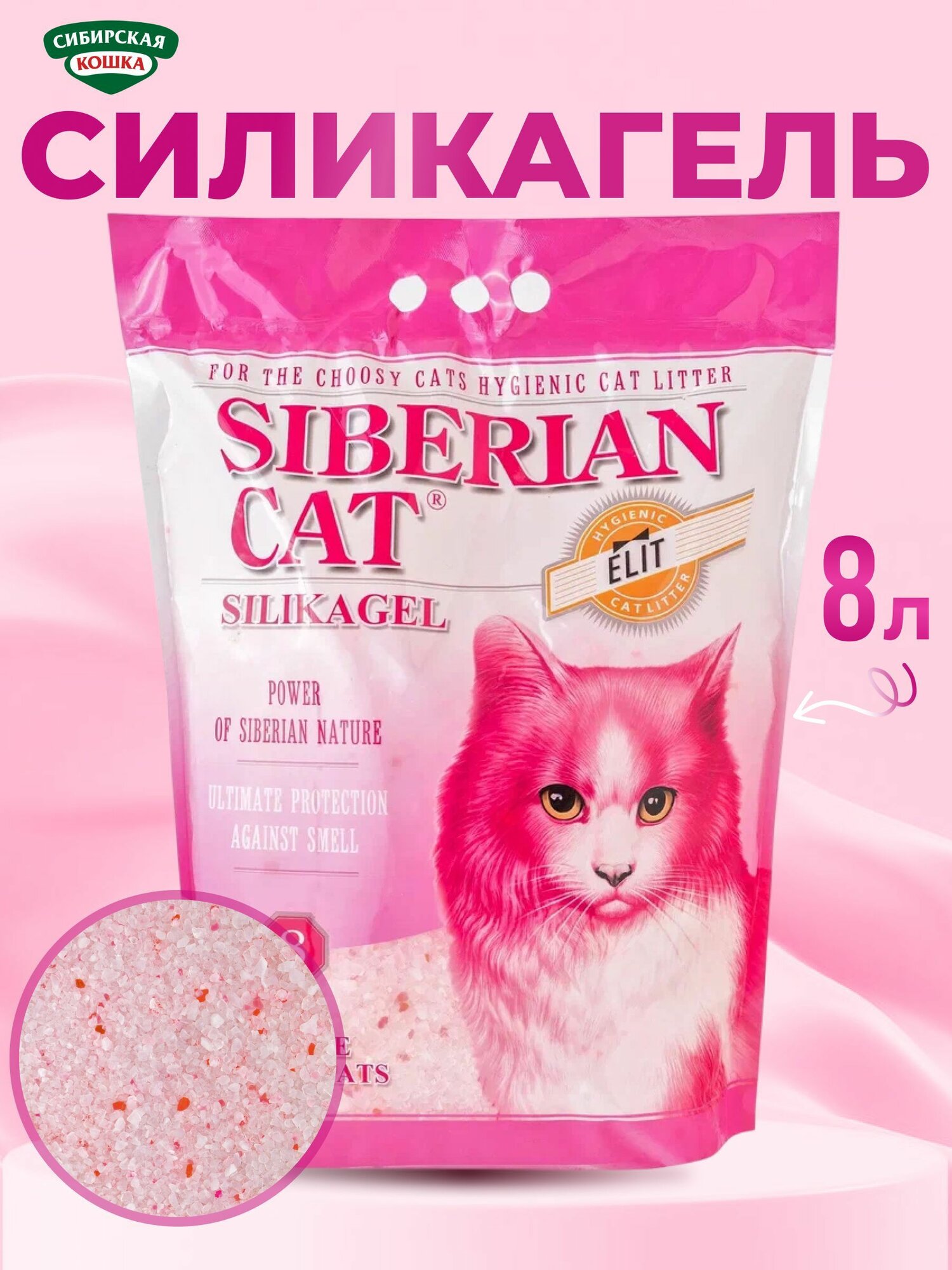 Наполнитель для кошачьего туалета 8л Элита СИБИРСКАЯ КОШКА силикагелевый розовые гранулы интересное: