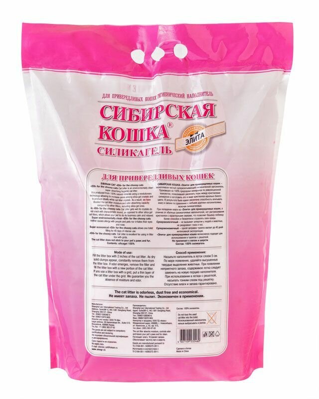 Сибиркая кошка "ELIT" силикагелевый наполнитель, розовые гранулы, 8 л интересное: