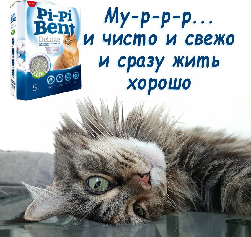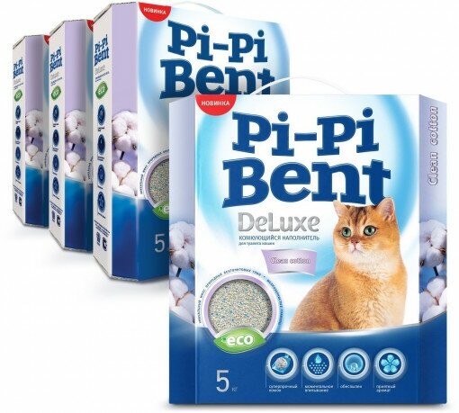 Наполнитель для кошачьих туалетов Pi-pi-bent комкующийся Pi-Pi Bent DeLuxe Clean cotton 5 кг интересное: