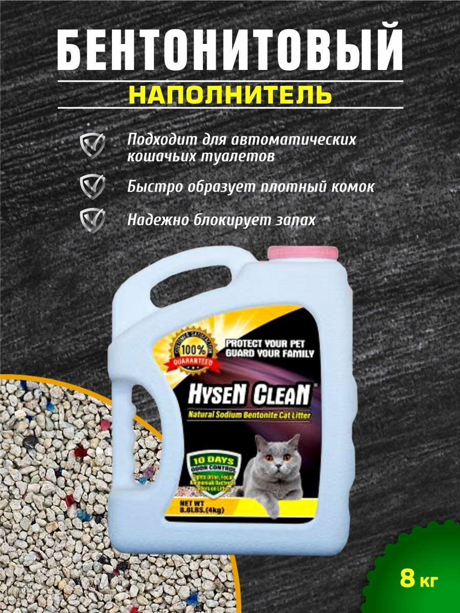 Наполнитель натриевый для кошачьего туалета HYSEN CLEAN Fresh, комкующийся, минеральный, 8 кг интересное: