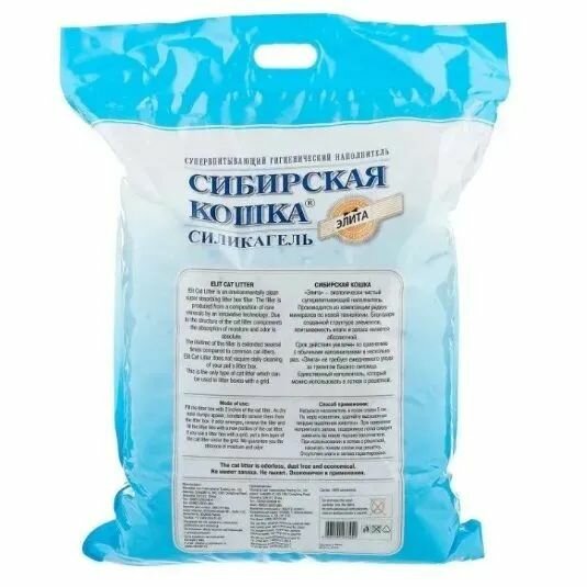 Наполнитель для кошачьего туалета 24л Элита СИБИРСКАЯ КОШКА силикагелевый голубые гранулы