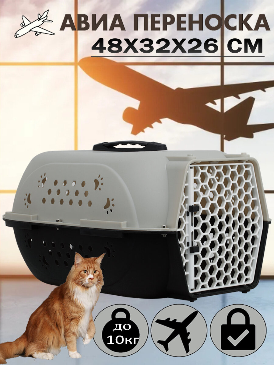 Купить Авиа переноска для домашних животных "Чистый котик" 48х32х26 см, серый