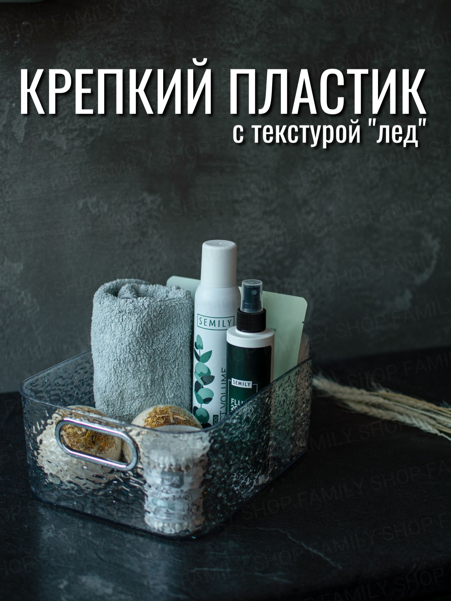Органайзер / корзина для косметики лед (прозрачный белый / ручки серебро) интересное:
