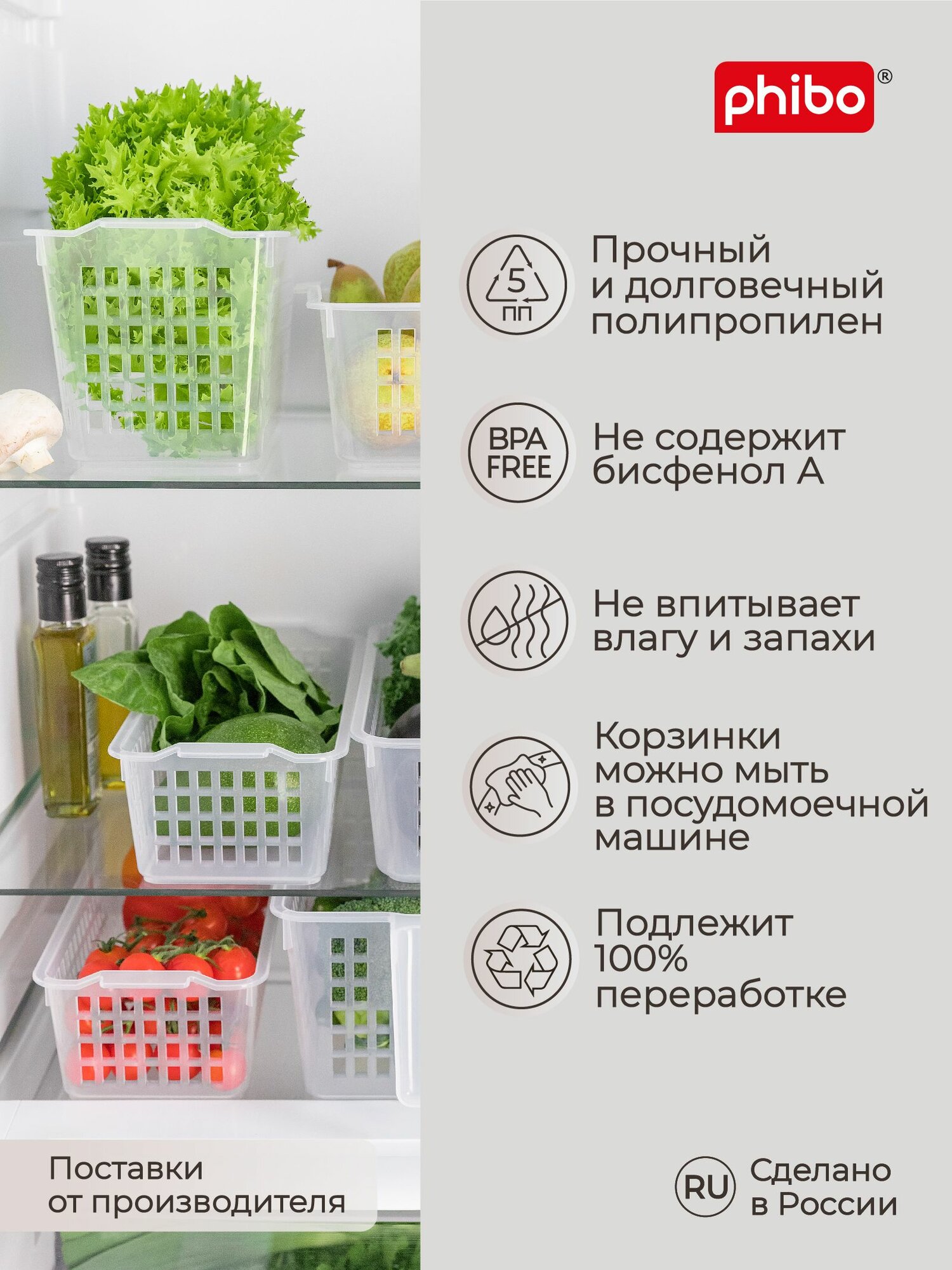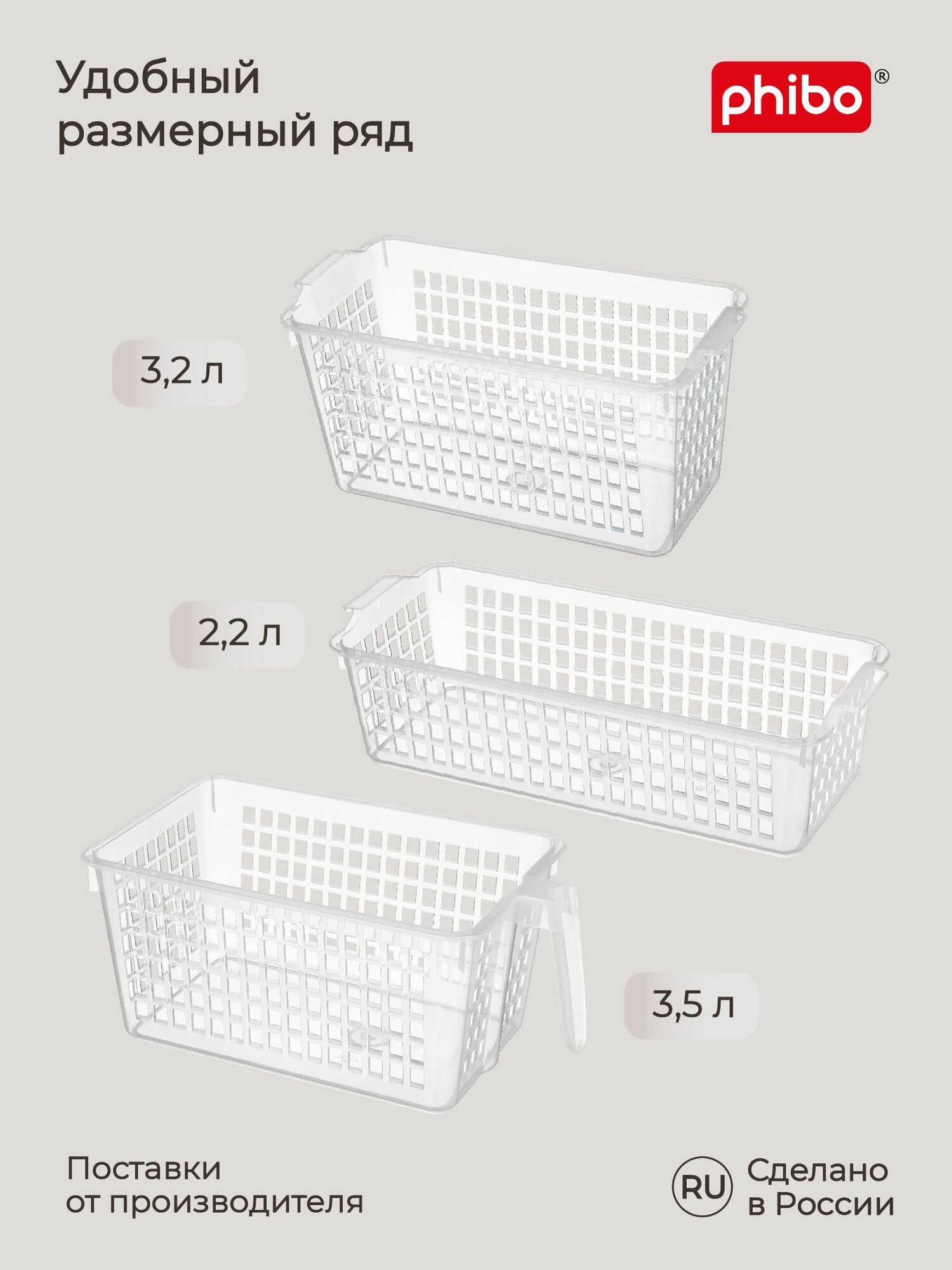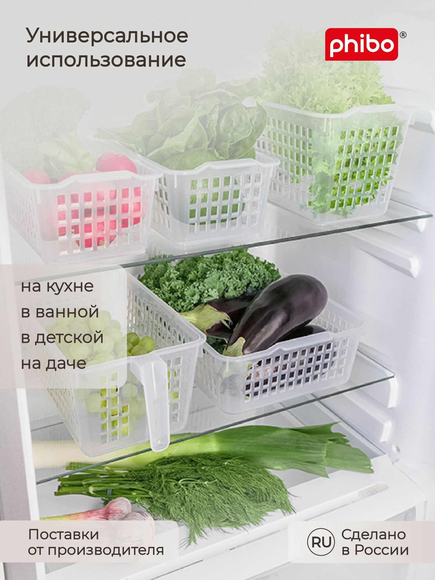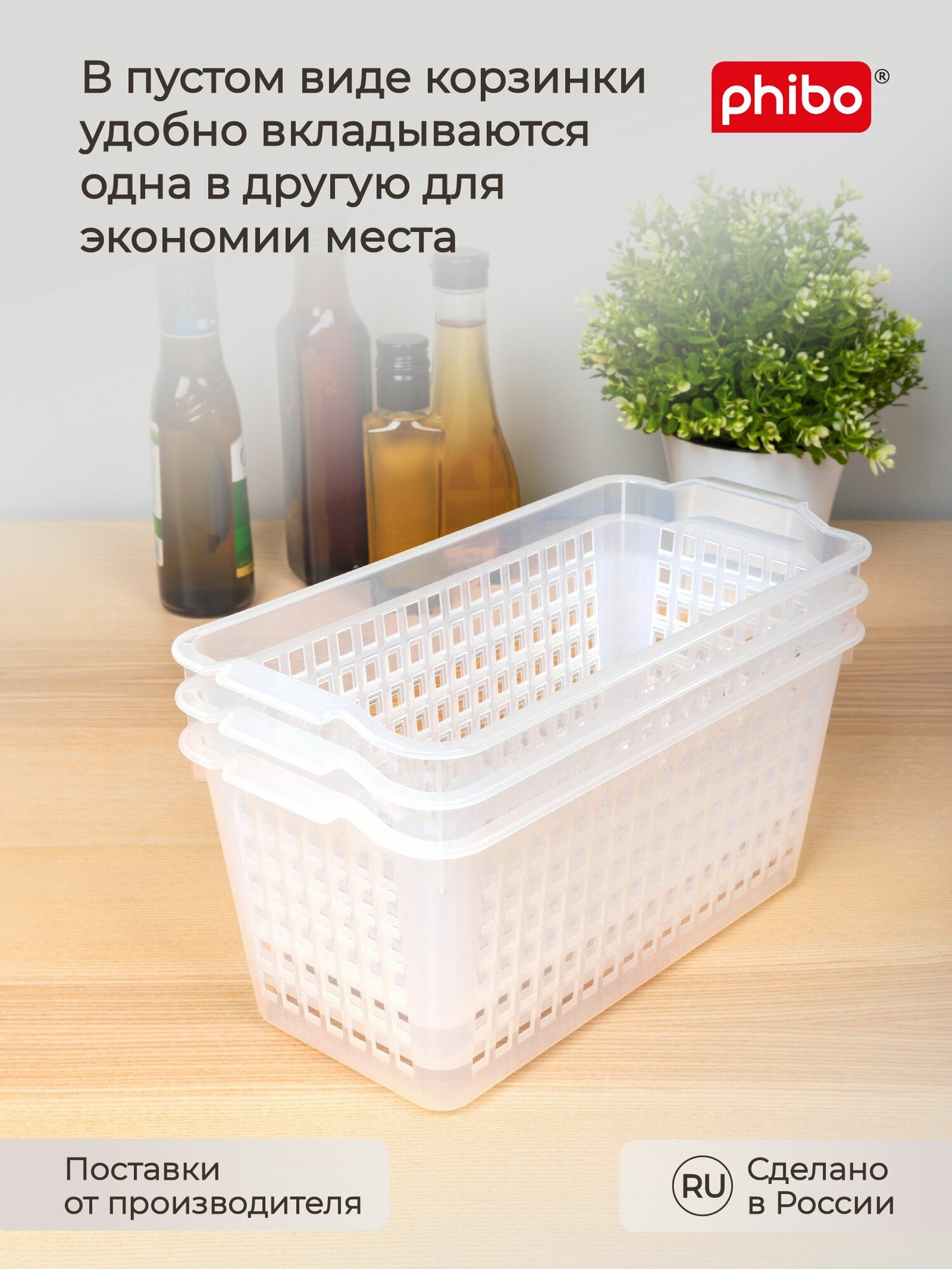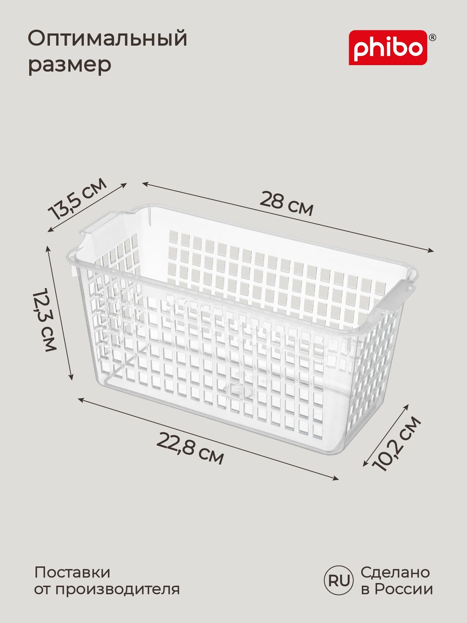 Корзинка универсальная для продуктов, мелочей 28х13,5х12,3 см, 3,2л, бесцветный