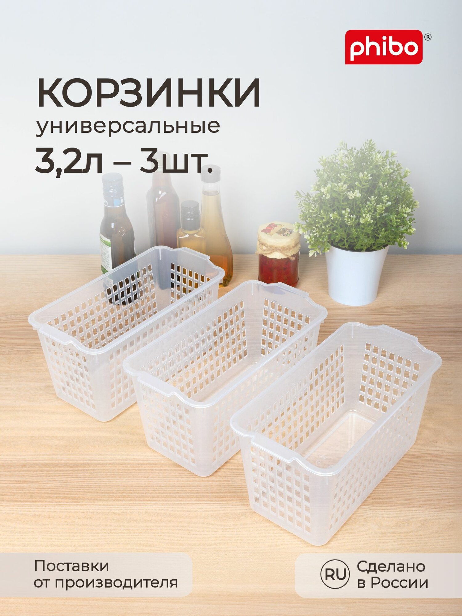 Купить Органайзеры для хранения продуктов, косметики, канцелярии, вещей 3,2 л/ 3 шт набор, корзинки для ванной, кухни, пластиковые без крышки с ручками
