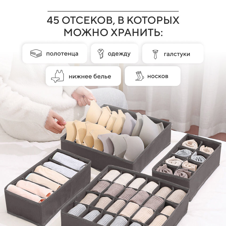 Органайзеры для вещей и белья Hausland, набор 4 шт, темно-серый интересное: