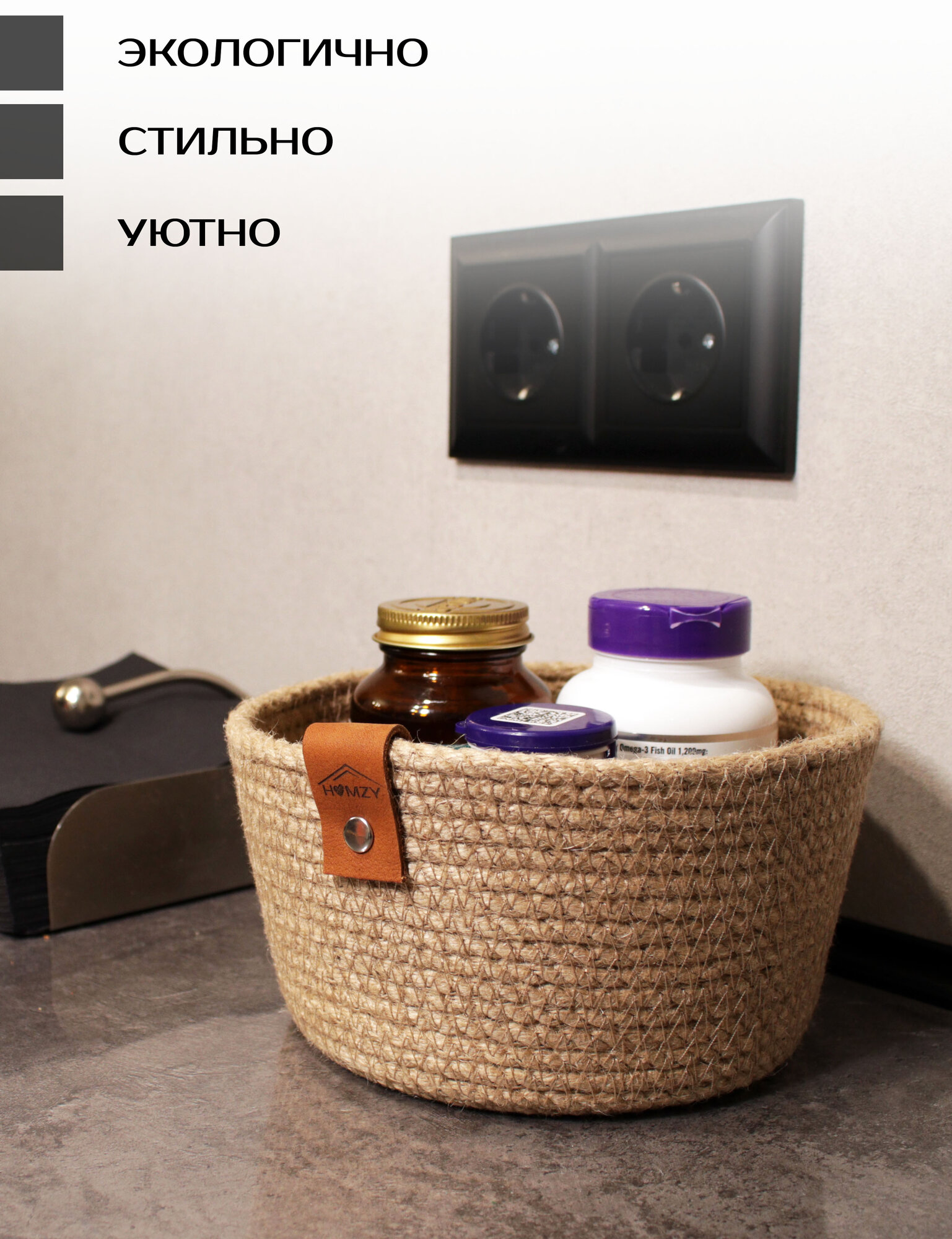 Набор плетеных вязаных корзин из джута для хранения дома и на даче HOMZY