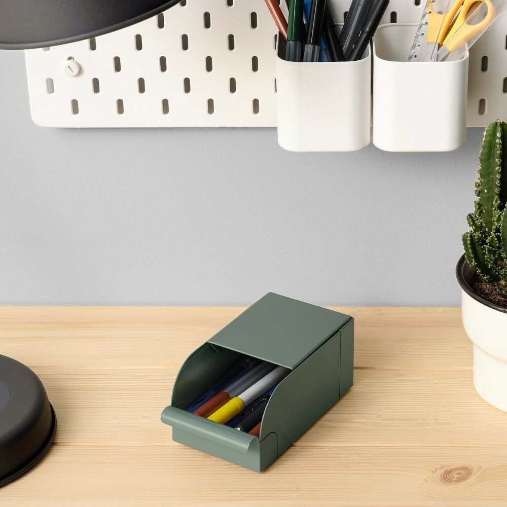 Контейнер для хранения икеа рейса, 17х9х7.5 см, серо-зеленый металлический