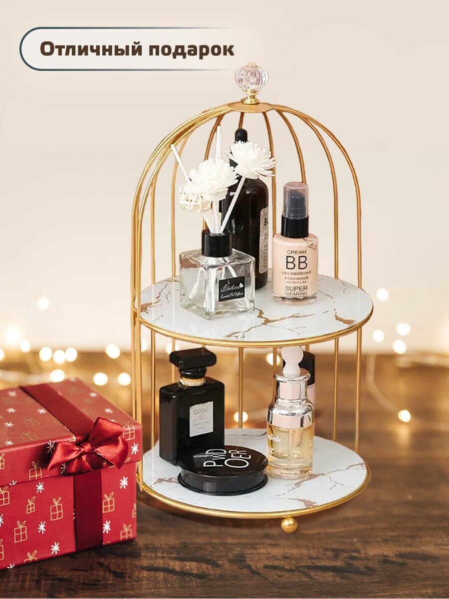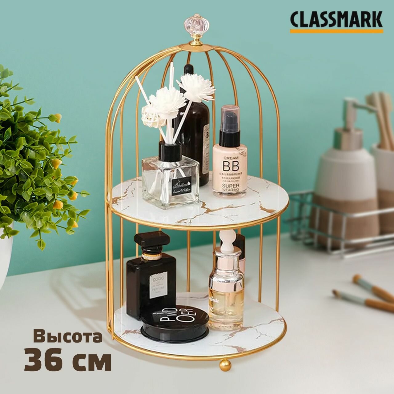 Органайзер для хранения косметики и мелочей Classmark большой настольный, 2 яруса из закаленного стекла цвета мрамор, 36х20см интересное: