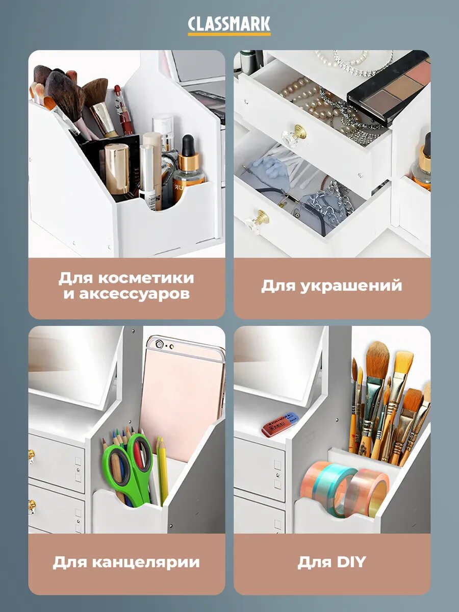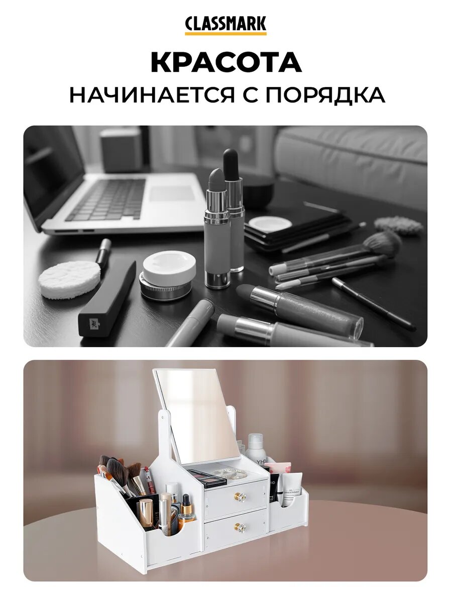 Органайзер для хранения косметики и мелочей с зеркалом Classmark большой настольный с выдвижными ящиками, 6 секций, 40х20х35см, белый интересное: