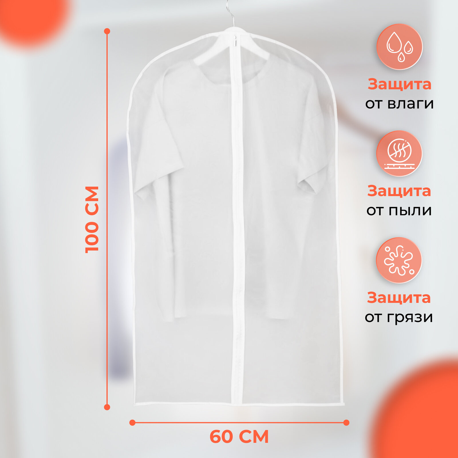 Чехол для одежды Доляна, 60×100 см, PEVA