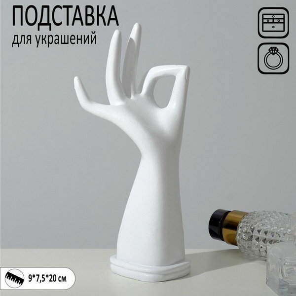 Подставка для украшений "Рука" 9*7,5*20, цвет белый 7339302