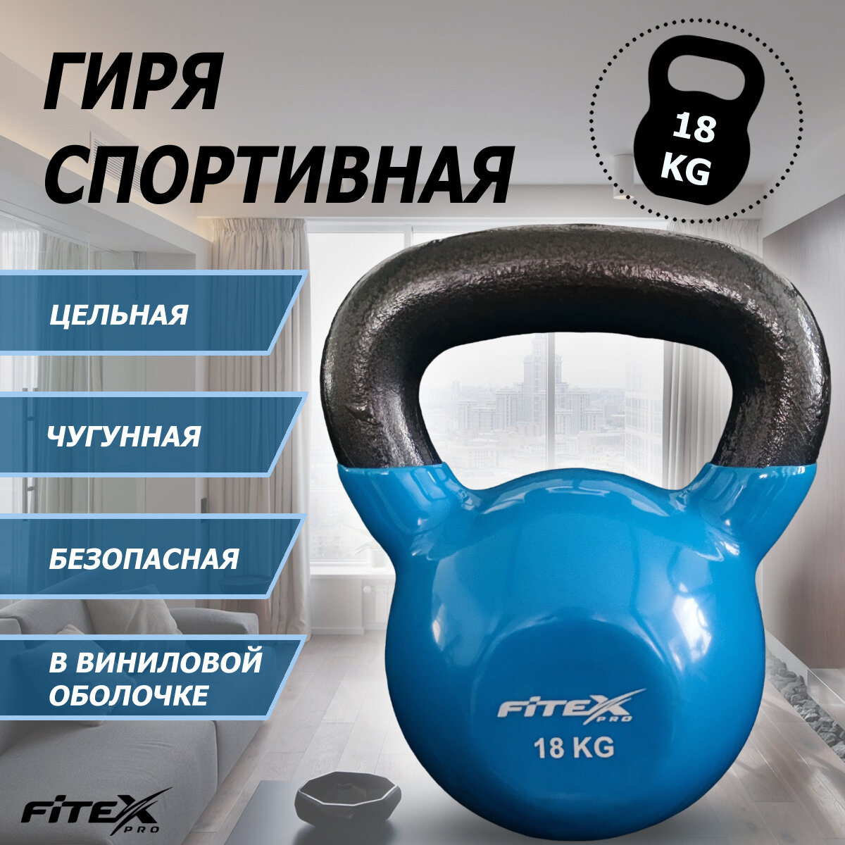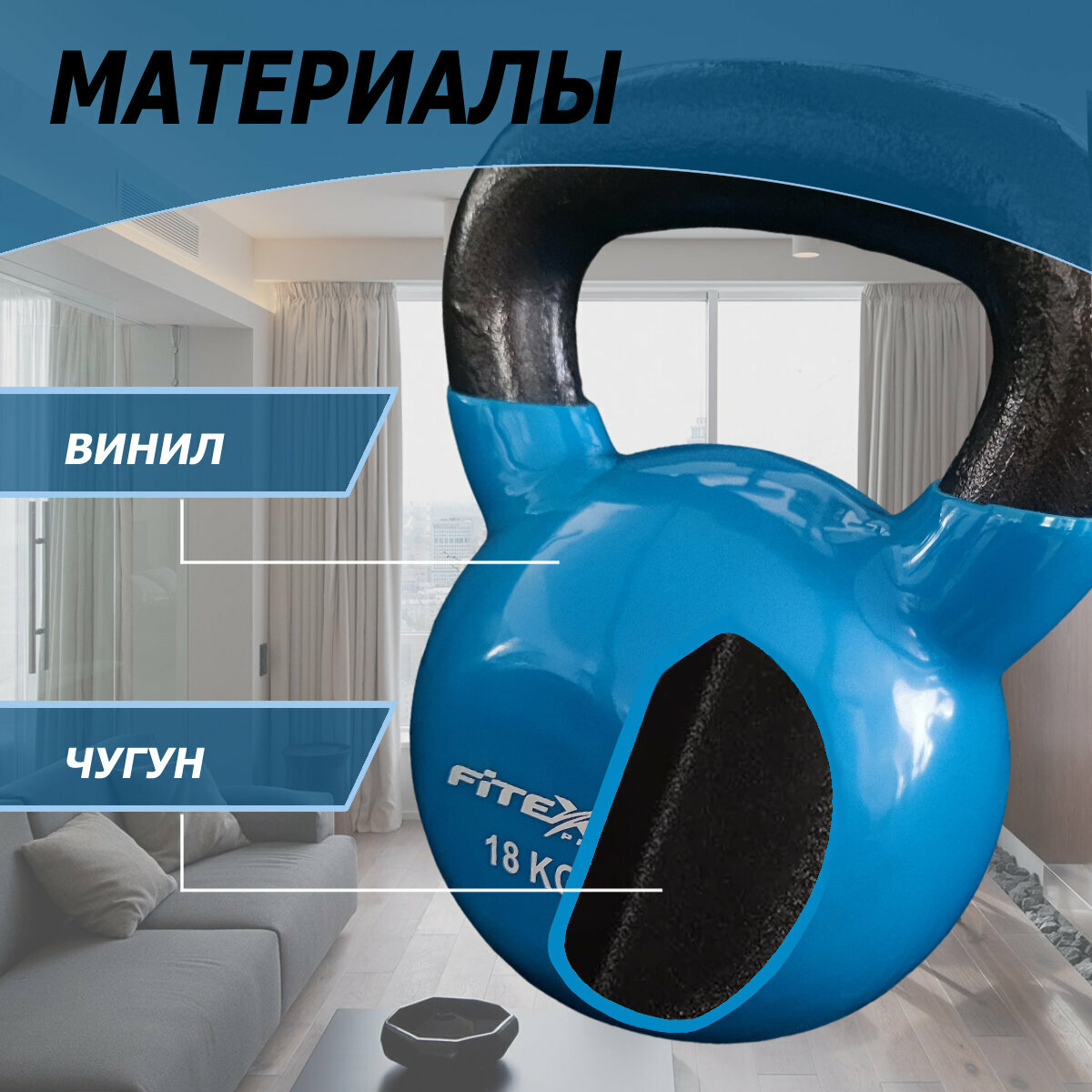 Купить Гиря Fitex 18 кг, цельнолитая, чугунная, в виниловой оболочке. Гиря для функционального тренинга и фитнеса FTX2201-18