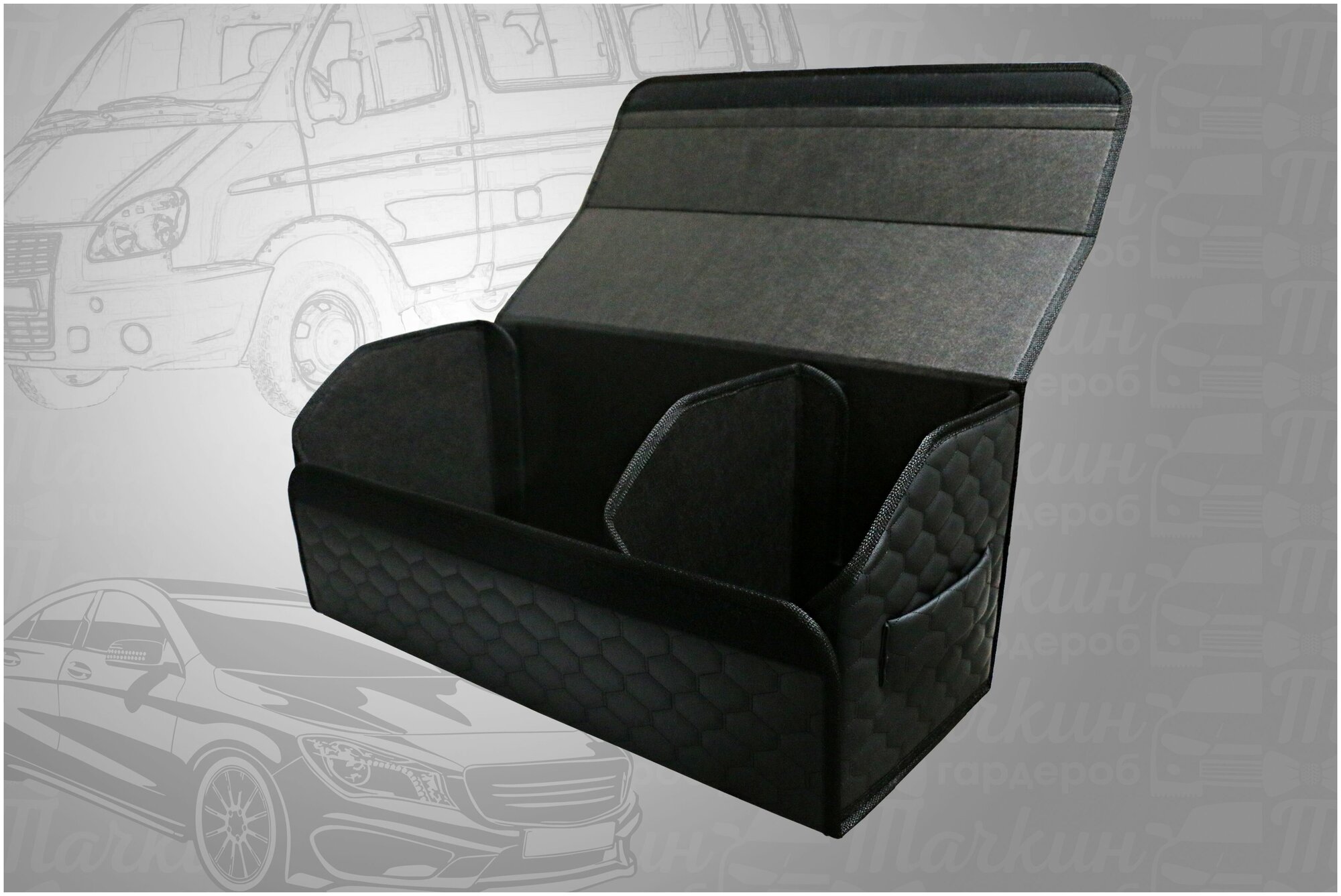 Высокий Саквояж из экокожи в багажник авто премиум-класса/ Органайзер 70*30*35 фигурный ромб черный/черн