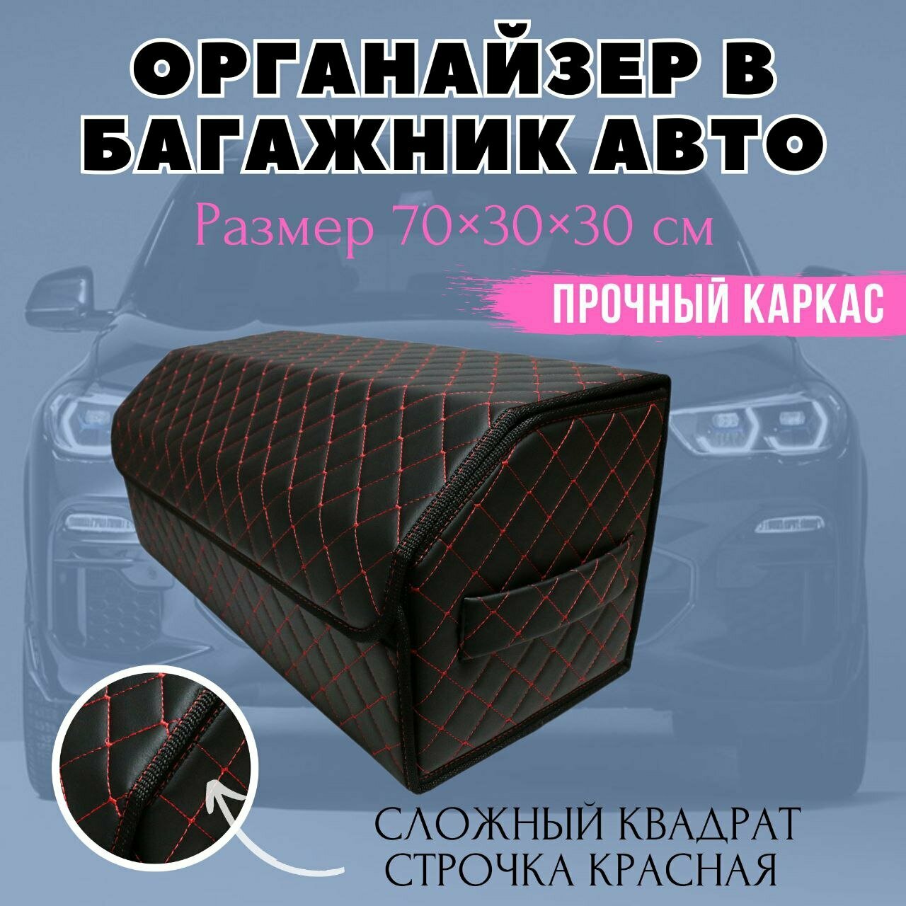 Аксессуары для авто/Органайзер в багажник 70х30х30 рисунок квадрат красный/красная строчка/черная окантовка/автосаквояж/автомобильный бокс/кофр для авто