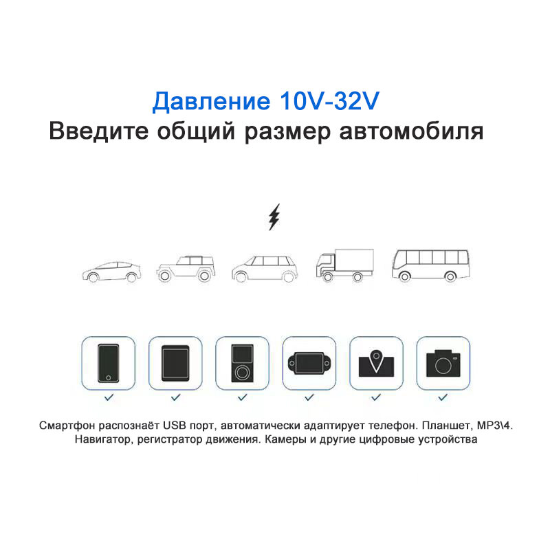 Разветвитель прикуривателя для авто AOCV/ 2 гнезда USB/ Быстрая зарядка, черный интересное: