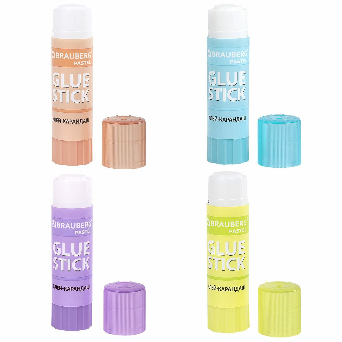 Клей-карандаш 15 г, выгодная упаковка, BRAUBERG PASTEL, 4 штуки на блистере, PVP-основа, 271250 (арт. 271250)