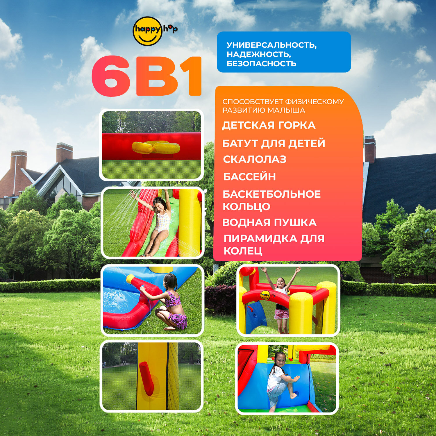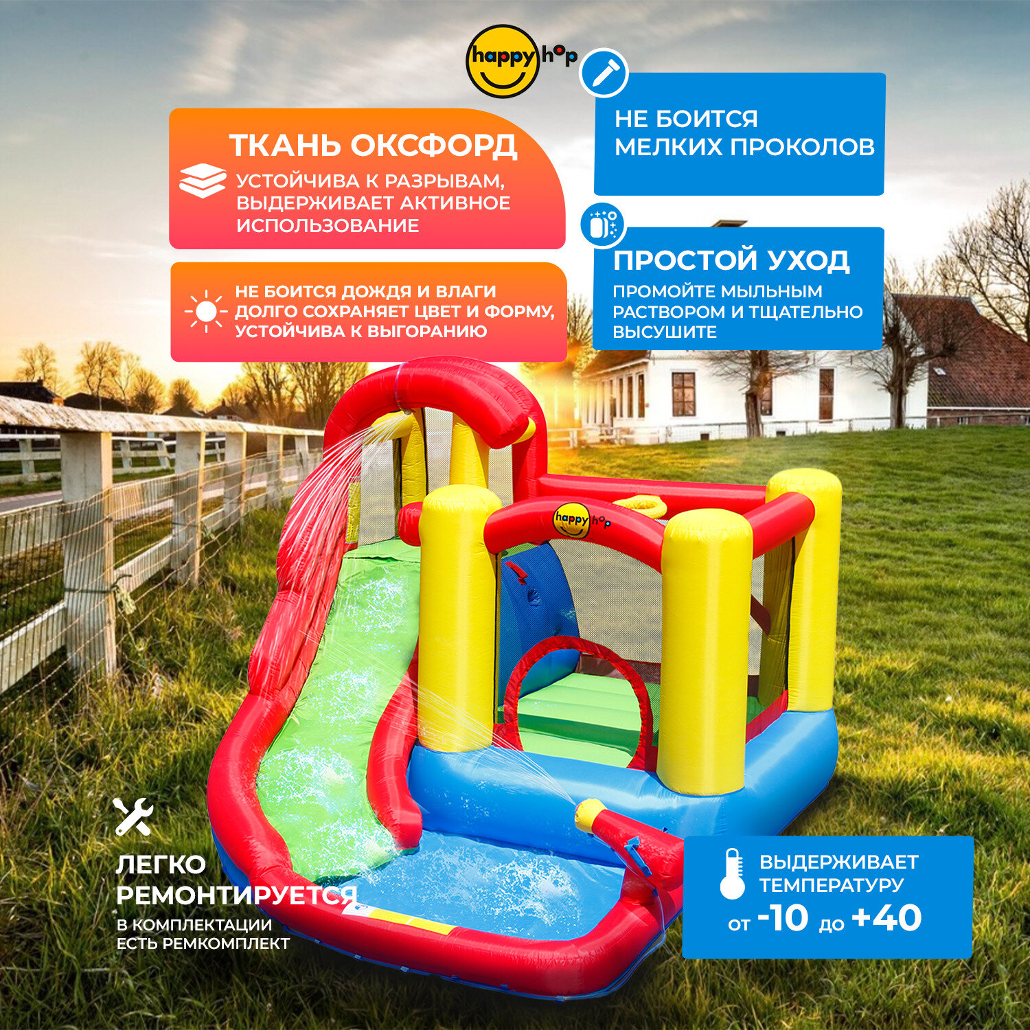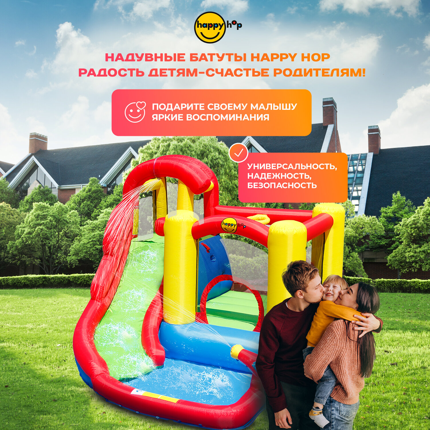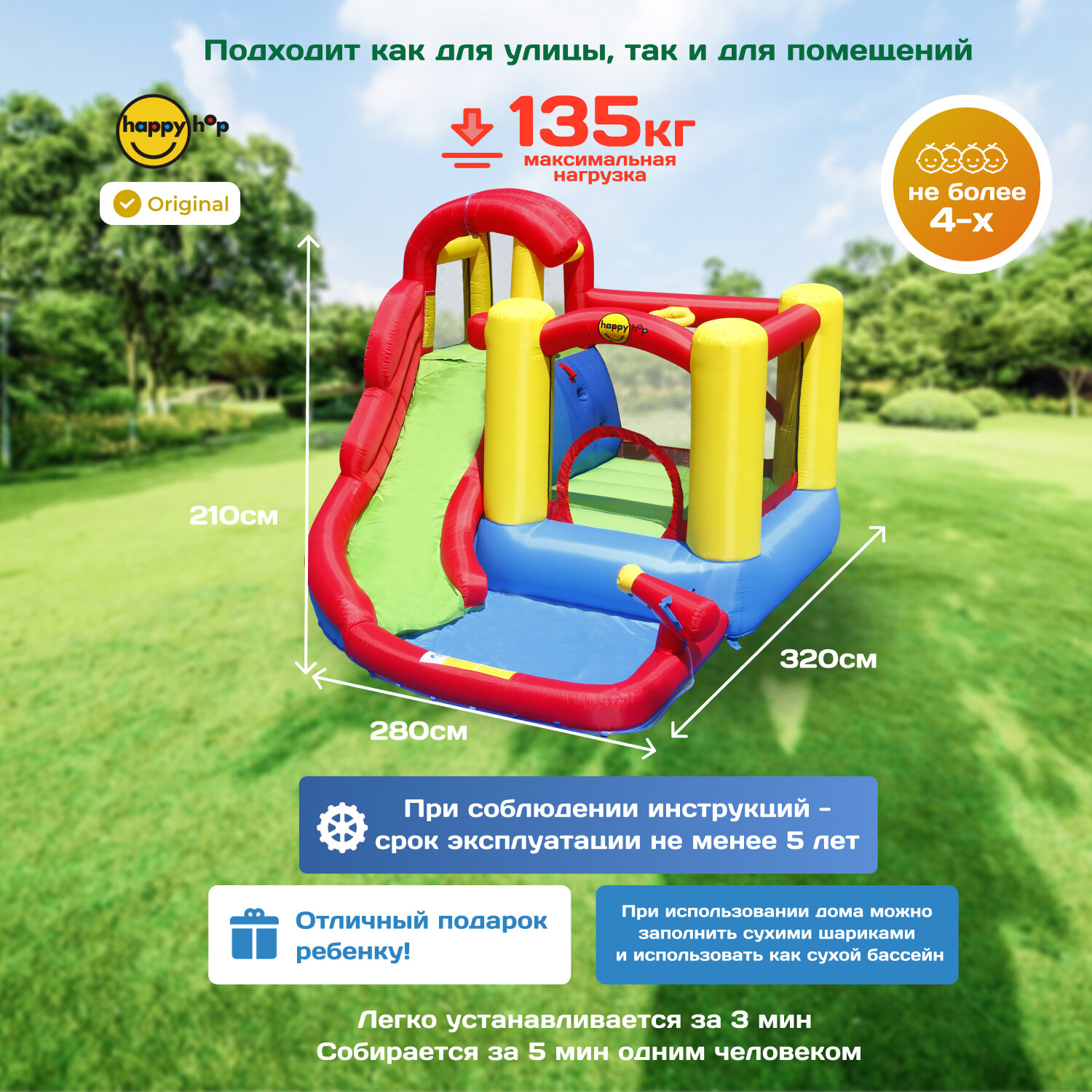 Детский надувной батут для дома и улицы Happy Hop "Прыжок и всплеск 2", с горкой, с защитной сеткой, 320х280х210 см интересное: