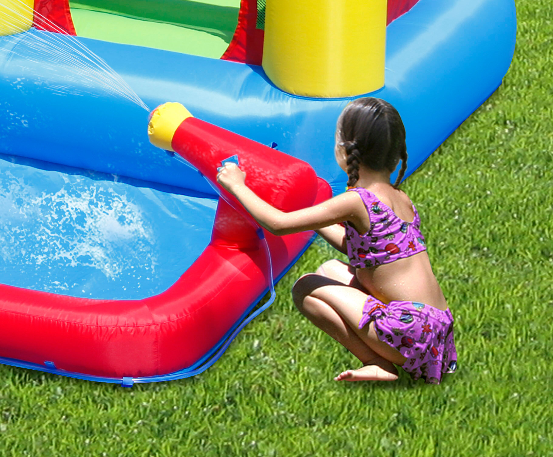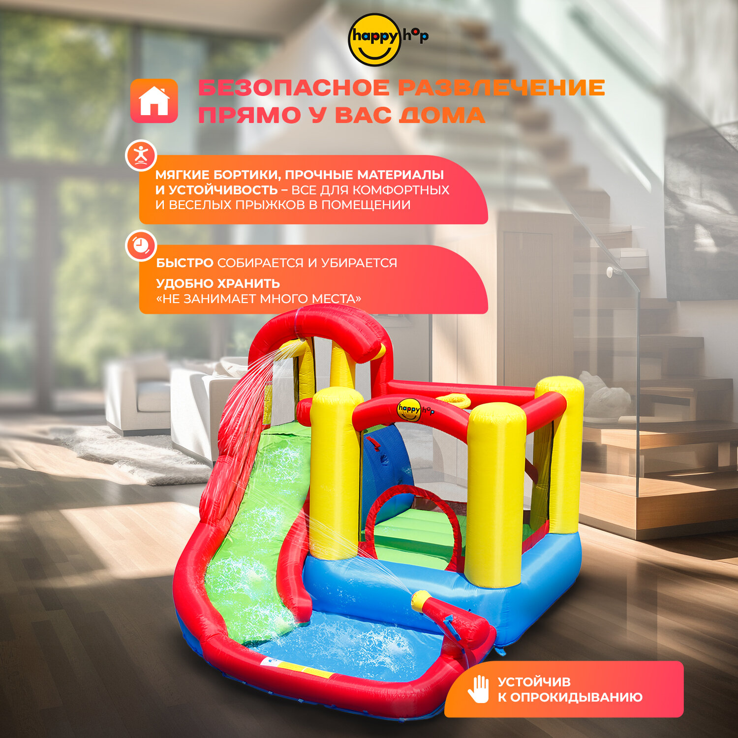 Купить Детский надувной батут для дома и улицы Happy Hop "Прыжок и всплеск 2", с горкой, с защитной сеткой, 320х280х210 см
