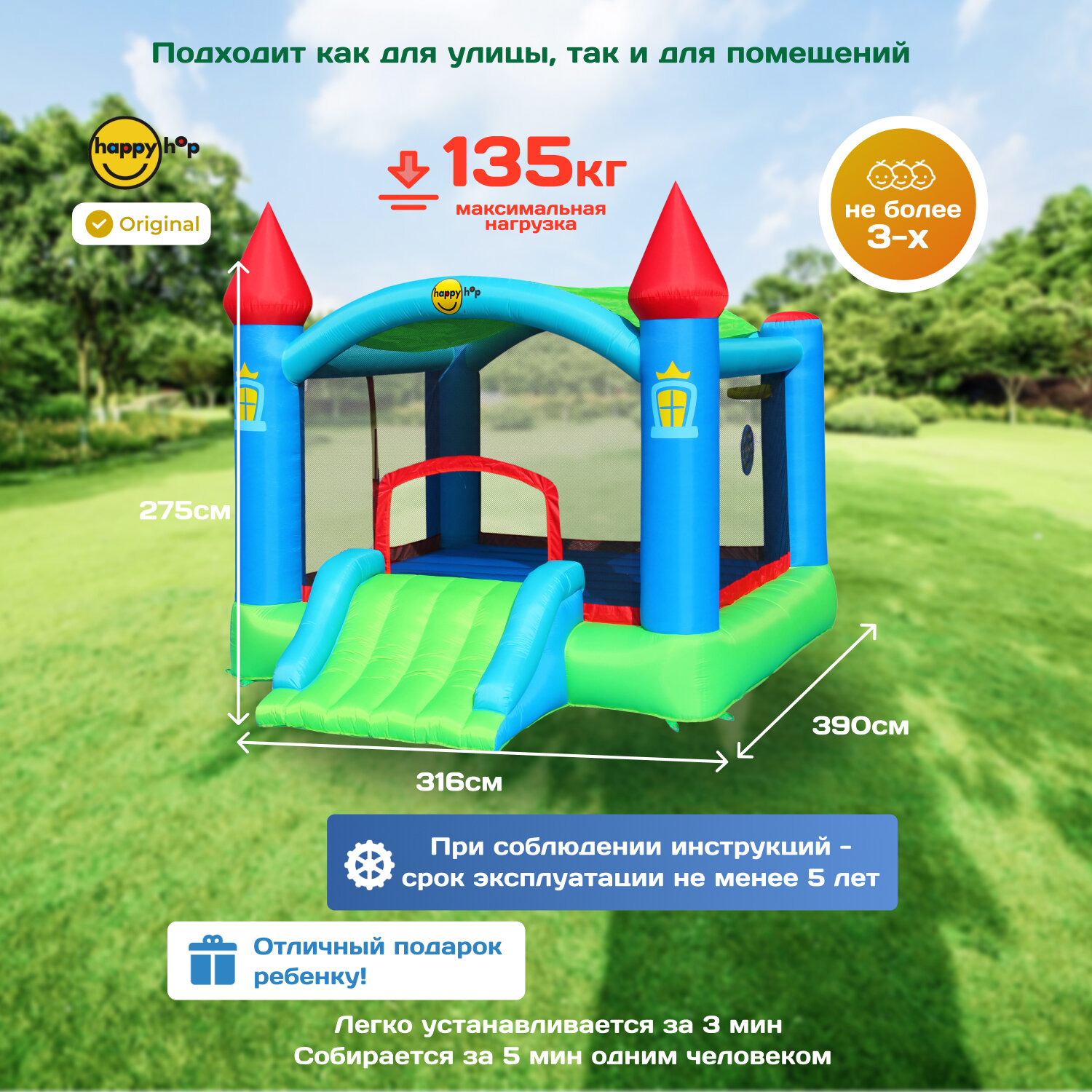Купить Детский надувной батут для дома и улицы Happy Hop "Мега крепость", с горкой, с защитной сеткой, 390х316х275 см