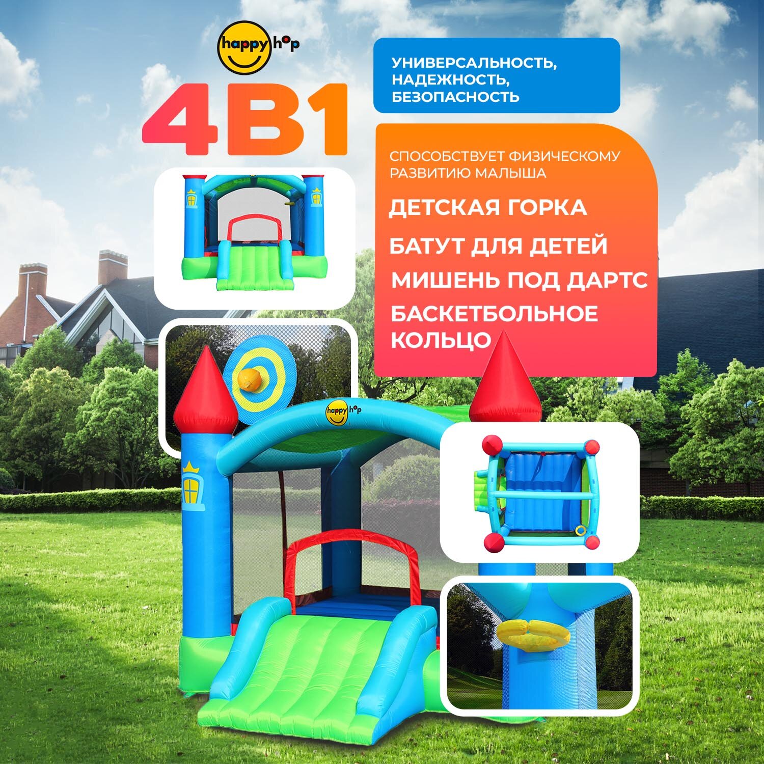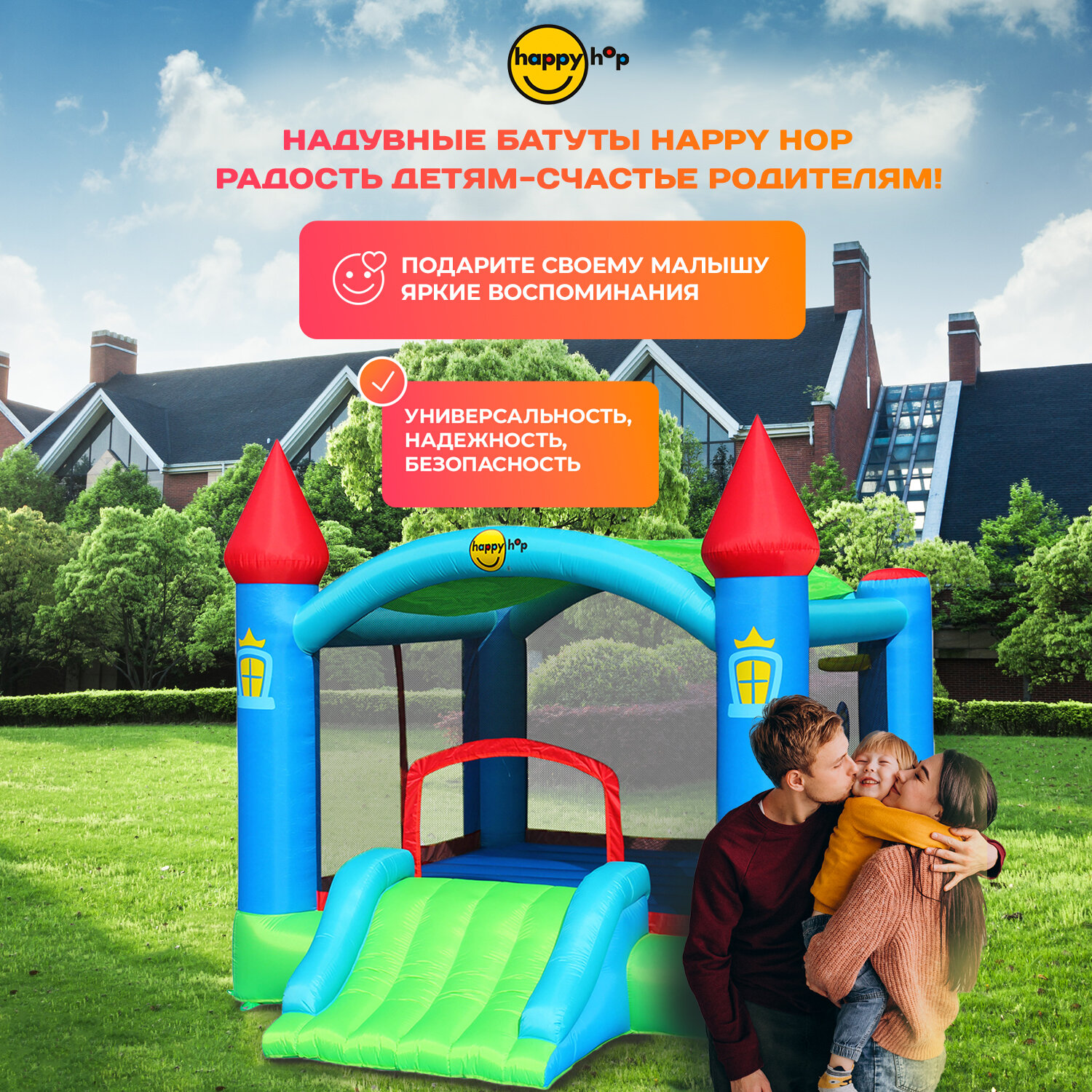 Детский надувной батут для дома и улицы Happy Hop "Попрыгун 2", с горкой, с защитной сеткой, 215х154х140 см