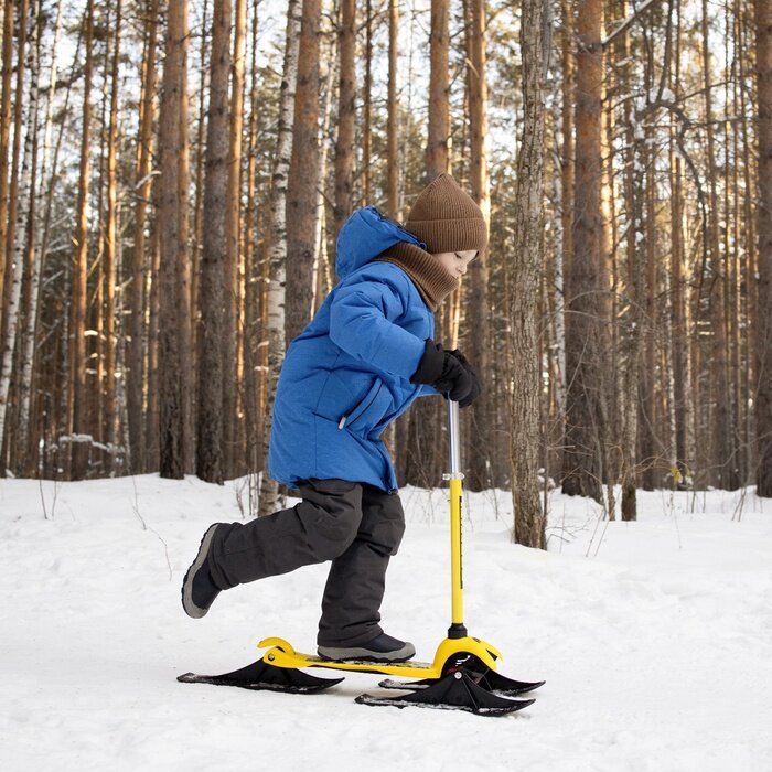 Самокат-снегокат 2 в 1, цвет желтый, черный