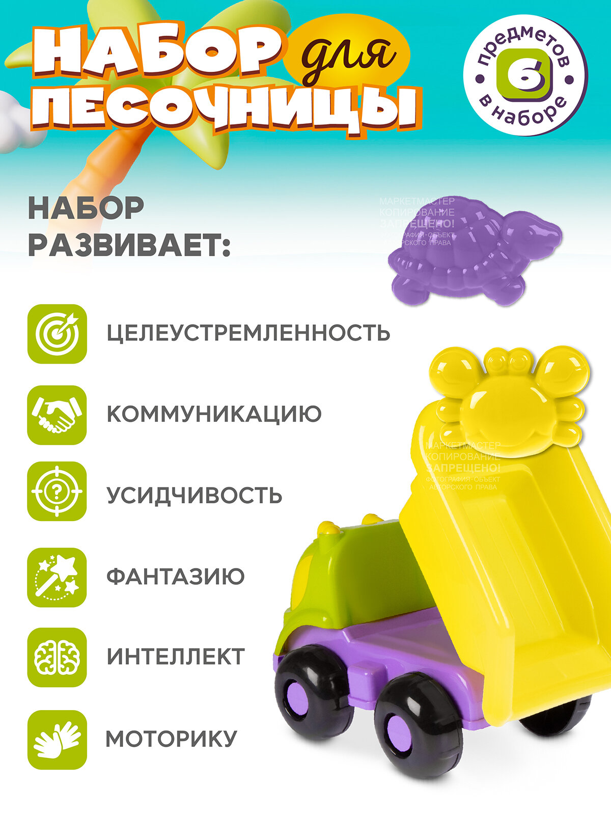 Купить Набор для песочницы с грузовиком, формочки, лопатка, грабли, лейка, JB5300665