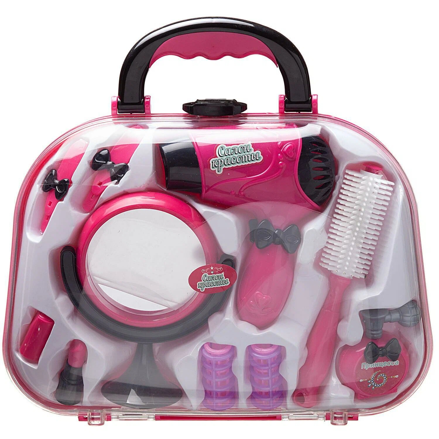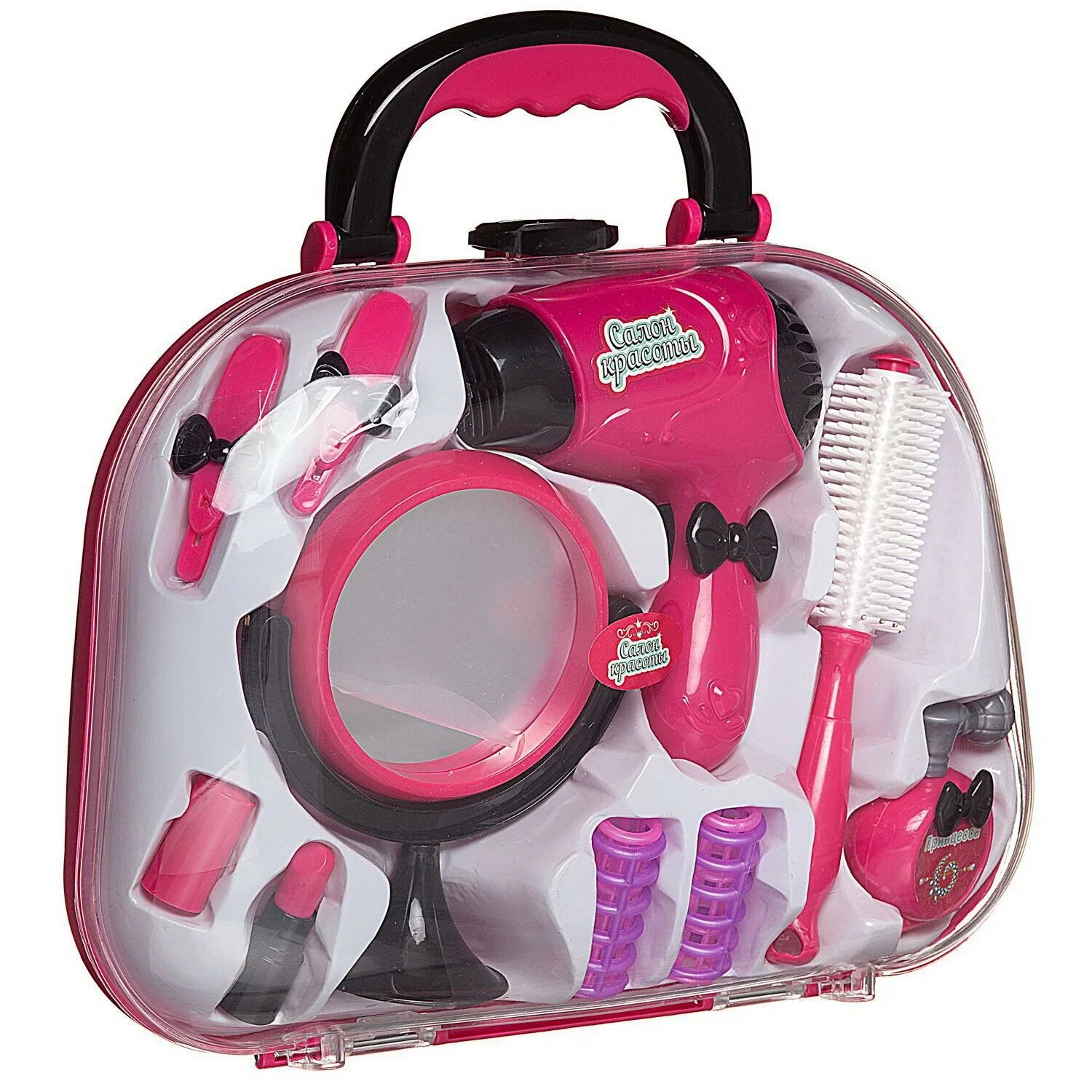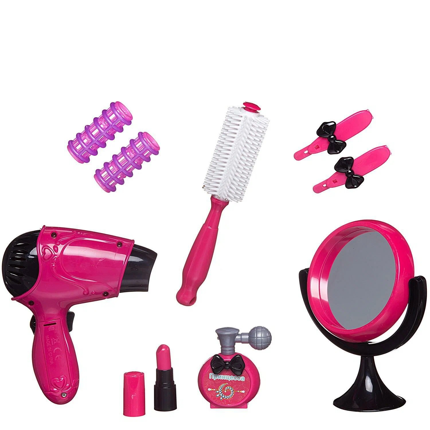 | Комплектация | зеркало фен расческа-щетка бигуди - 2шт заколки - 2шт духи (муляж) помада с колпачком 2 детали (муляж) |