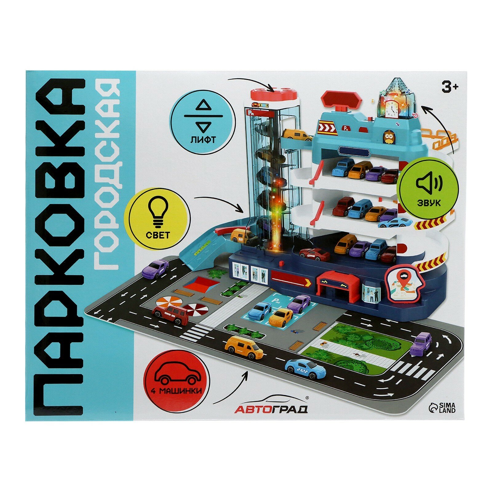 Купить Парковка «Городская», с лифтом, 3 уровня, 4 машинки, световые и звуковые эффекты