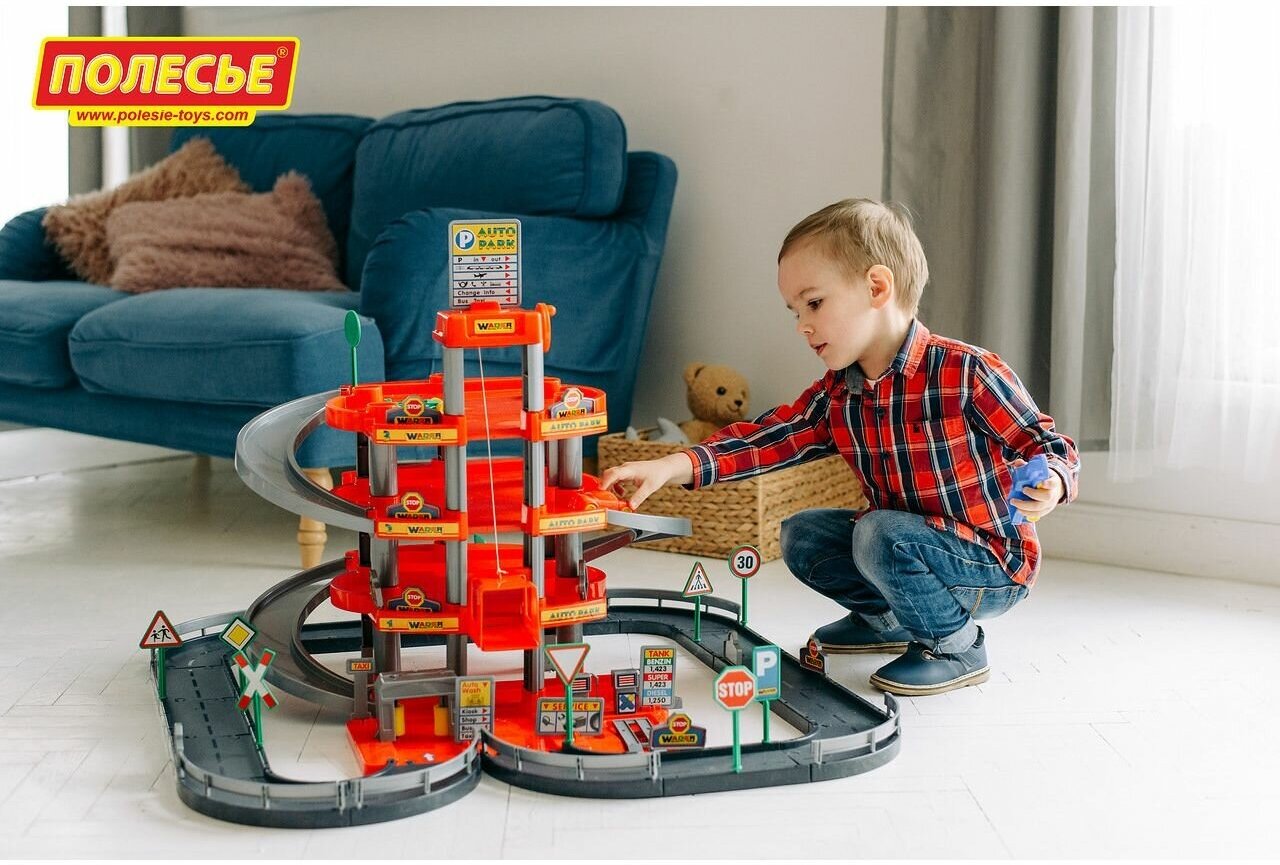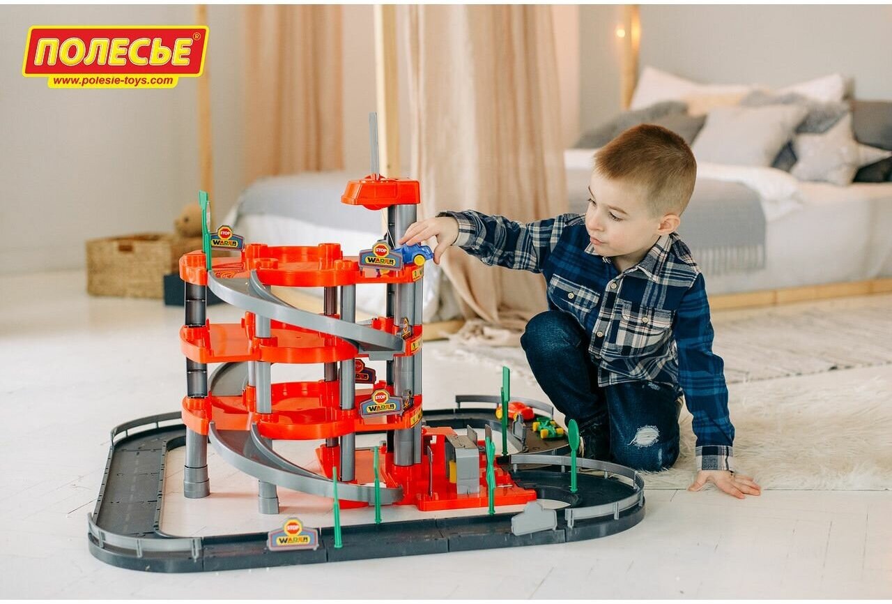 Паркинг 4-уровневый с дорогой и автомобилями 50x20x57 см. Красный (в коробке) Артикул 44723 интересное: