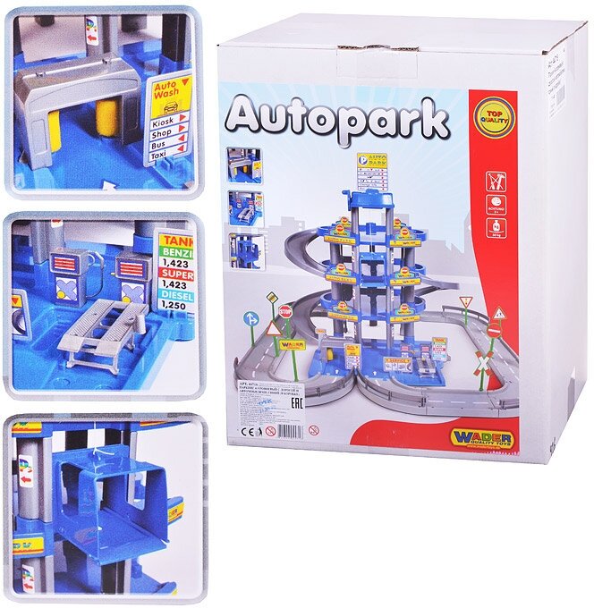Купить Паркинг 4-уровневый с автомобилями, дорожными знаками, автомойкой, автозаправкой, автосервисом, эстакадой и и лифтом (синий)