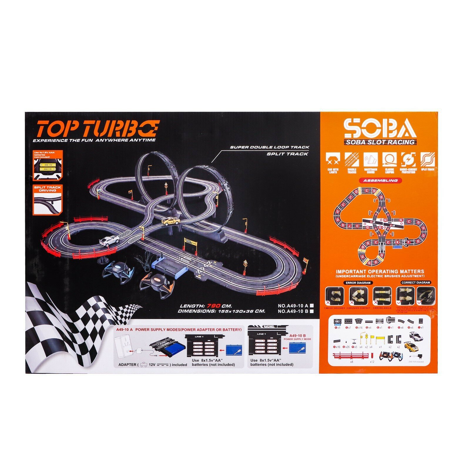 Купить Автотрек Top Turbo, с 2 машинами 1:43, длина 790 см, работает от сети, 6989366