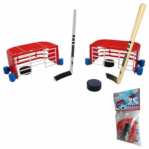 | Комплектация | Настольная спортивная игра Хоккей на парте. В наборе: ворота (9,5х5,5х4 см) - 2 шт., шайба (2 см) - 3 шт., клюшка (11х3,5 см) -2 шт. |