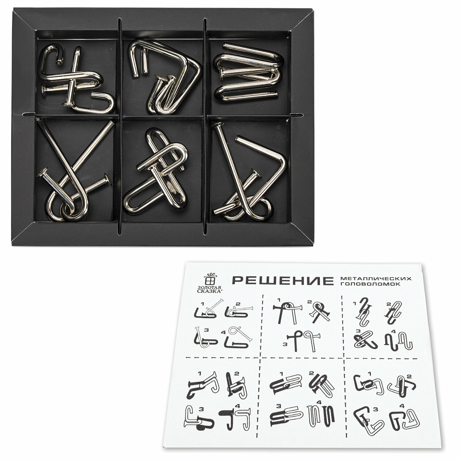 Головоломки металлические для взрослых и детей / развивающие игрушки большие Золотая Сказка, набор 6 штук, Medium level, 664926