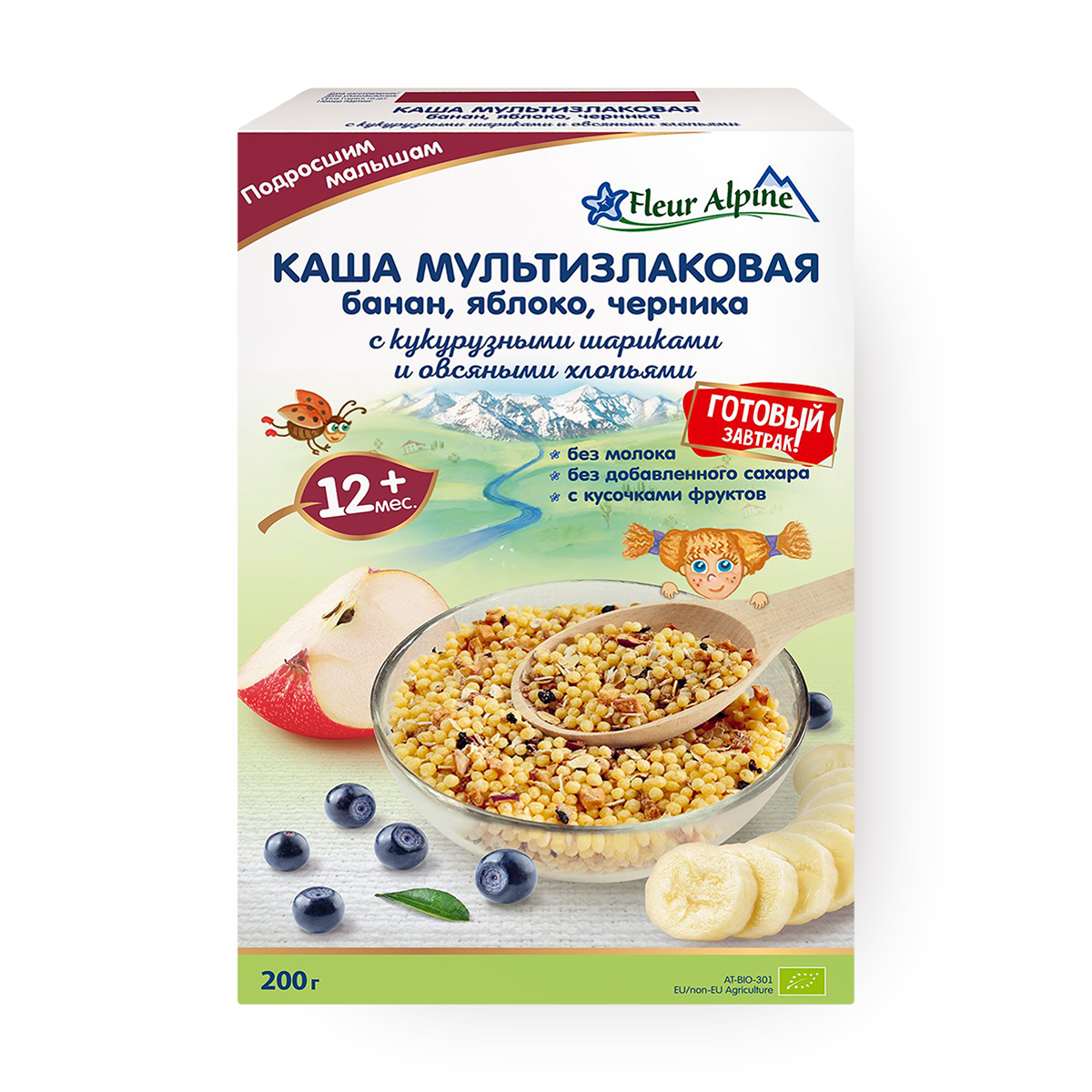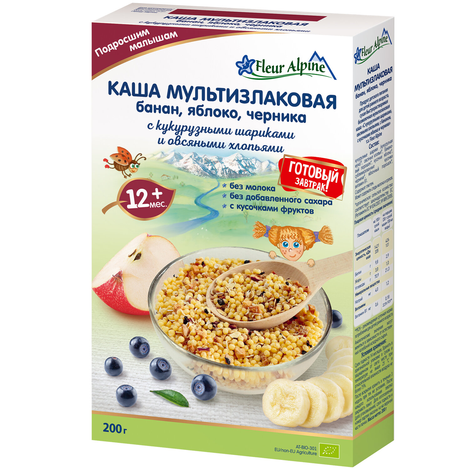 Каша безмолочная Fleur Alpine (Флер Альпин) мультизлаковая банан яблоко черника с 12 месяцев 200 г интересное: