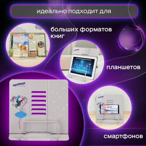 Подставка для книг, учебников, журналов настольная школьная Юнландия Flower girl, регулируемый угол наклона, металл, 237578