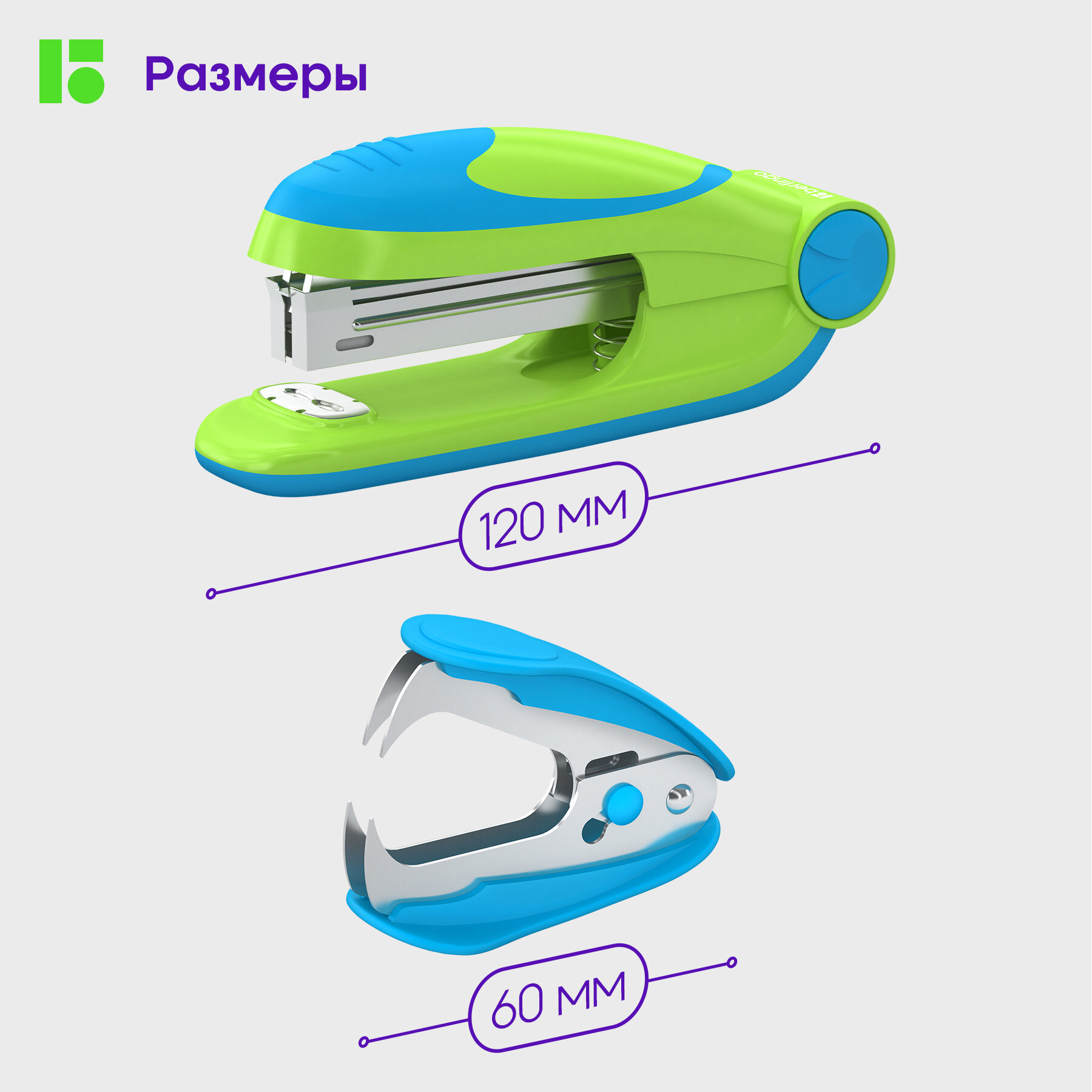 Купить Набор Berlingo "Fuze": степлер №10 до 15л, зеленый; антистеплер; скобы №10