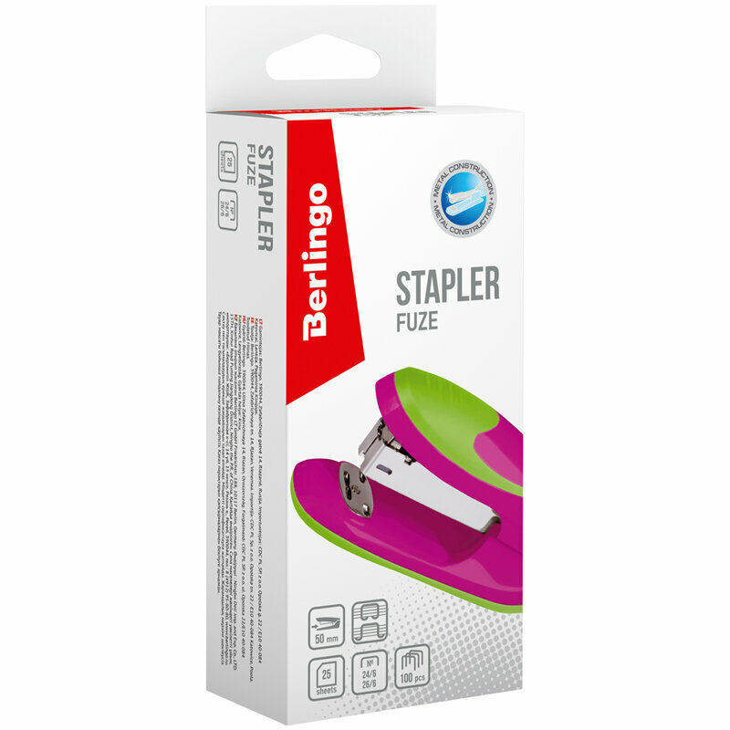 Купить Степлер Berlingo Fuze, №24/6 - 26/6, до 25 листов, 100 скоб, пластик, розовый (DSp_20225)
