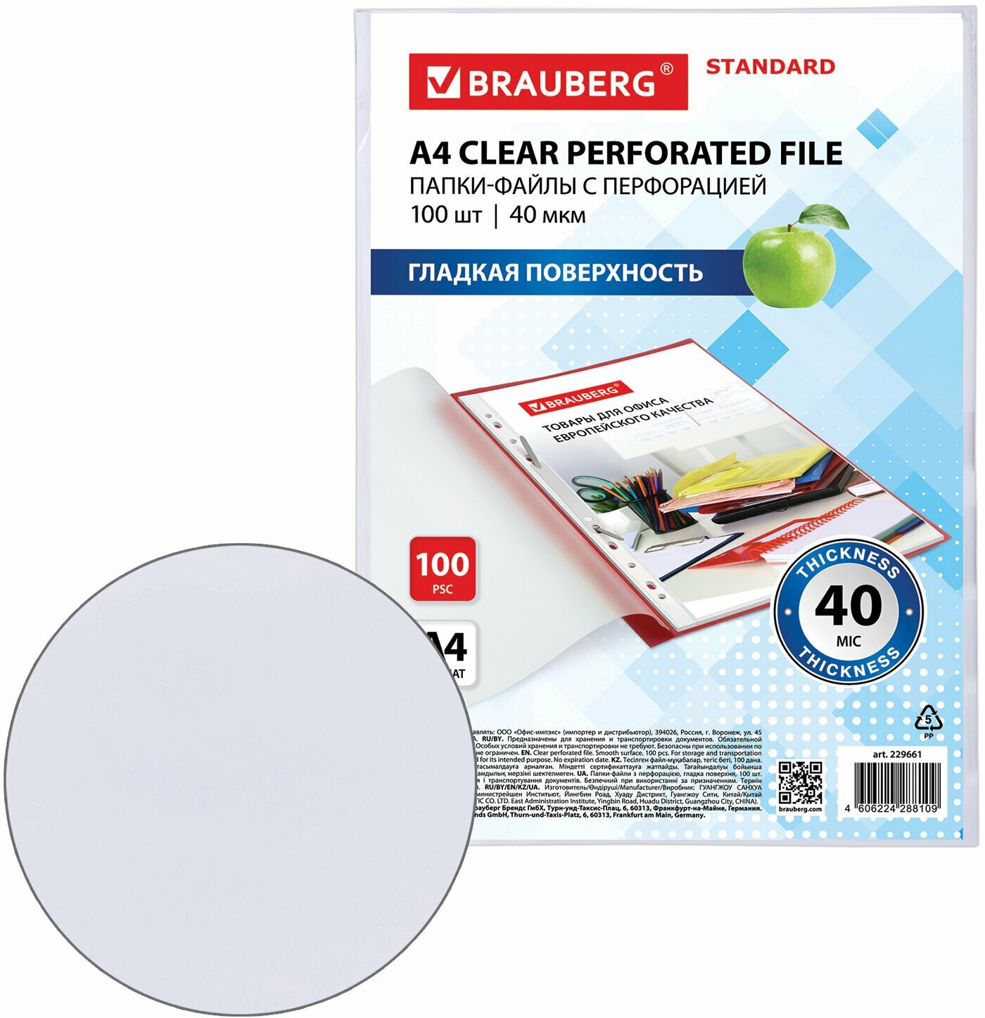 Папки-файлы перфорированные А4 BRAUBERG "STANDARD", комплект 100 шт, гладкие, 40 мкм, 229661 интересное: